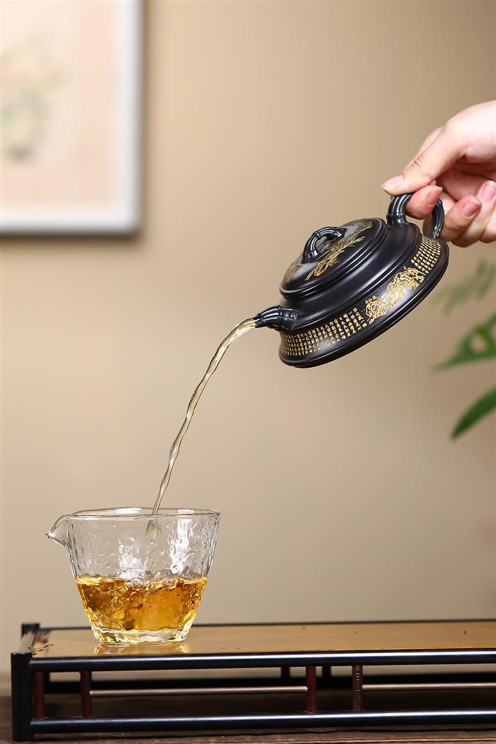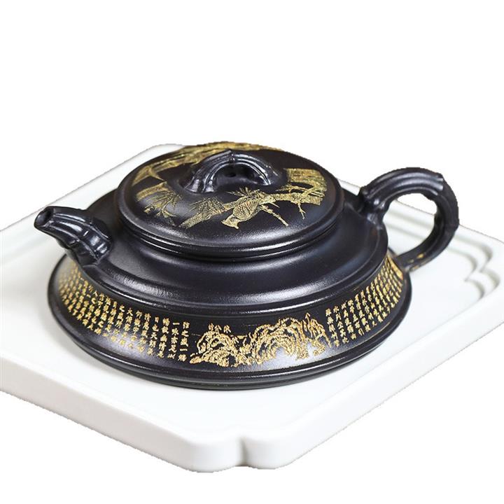 240cc玄鐵石黃雙線竹段蘭亭序集茶壺POT8272