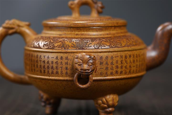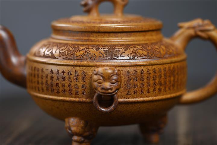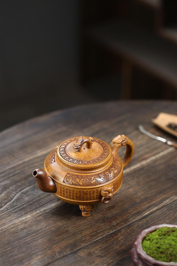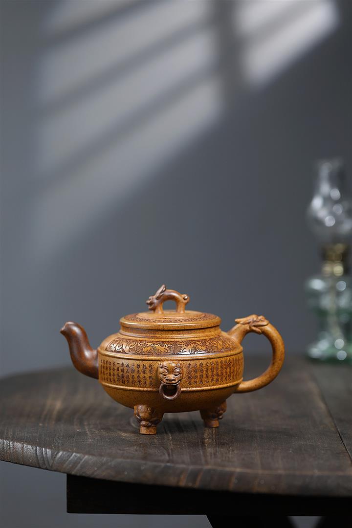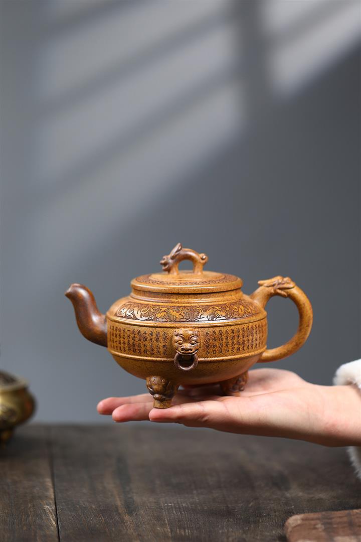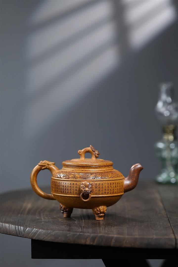 460cc特高溫柴燒段泥三足銜環茶壺POT8275