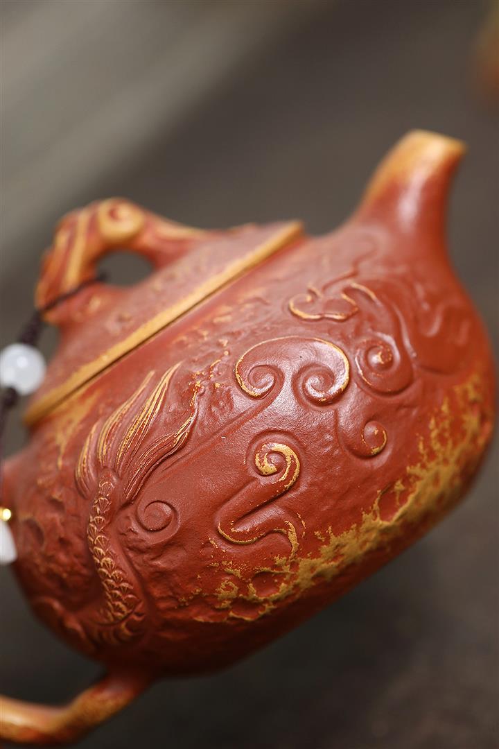 120cc原礦小紅泥祥雲漢瓦茶壺POT8118