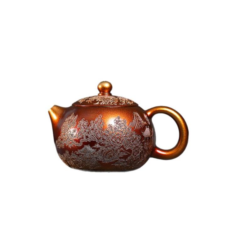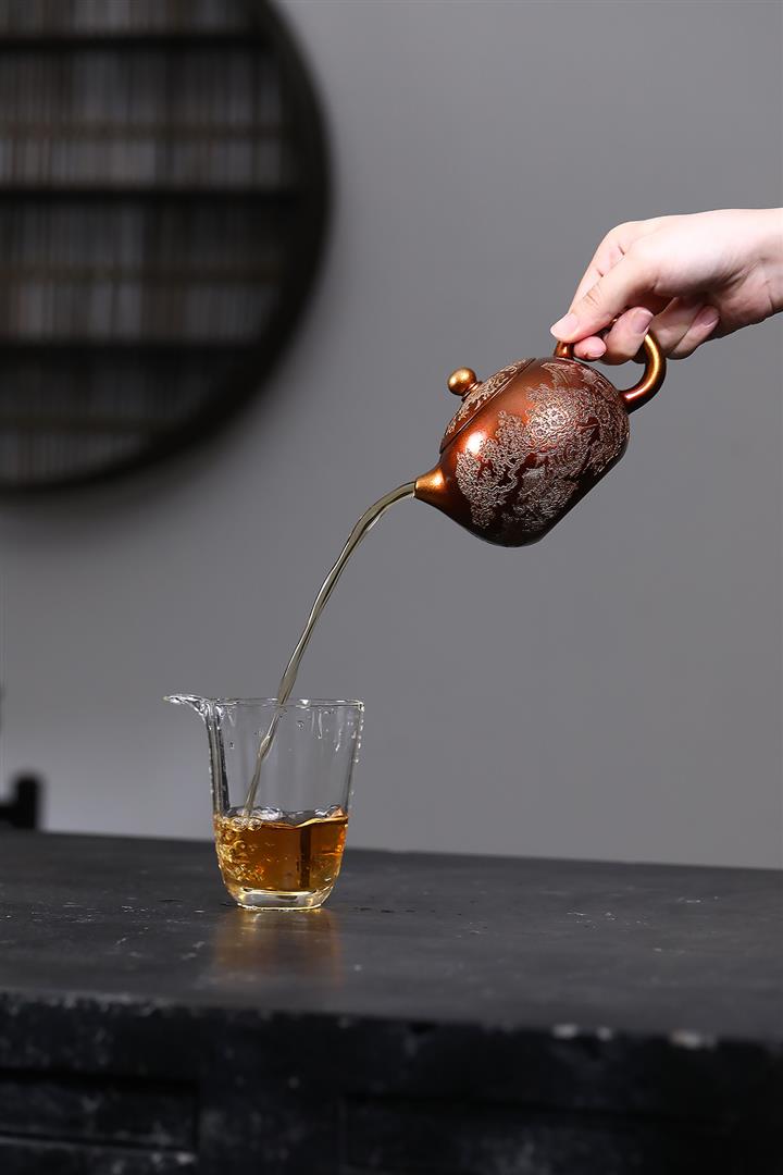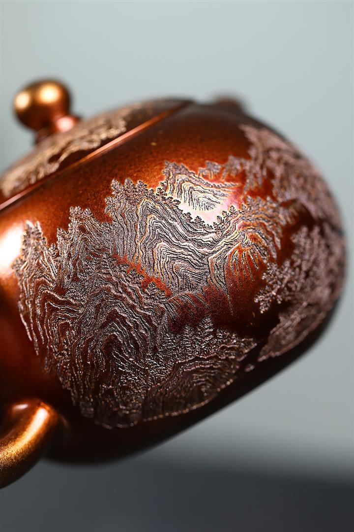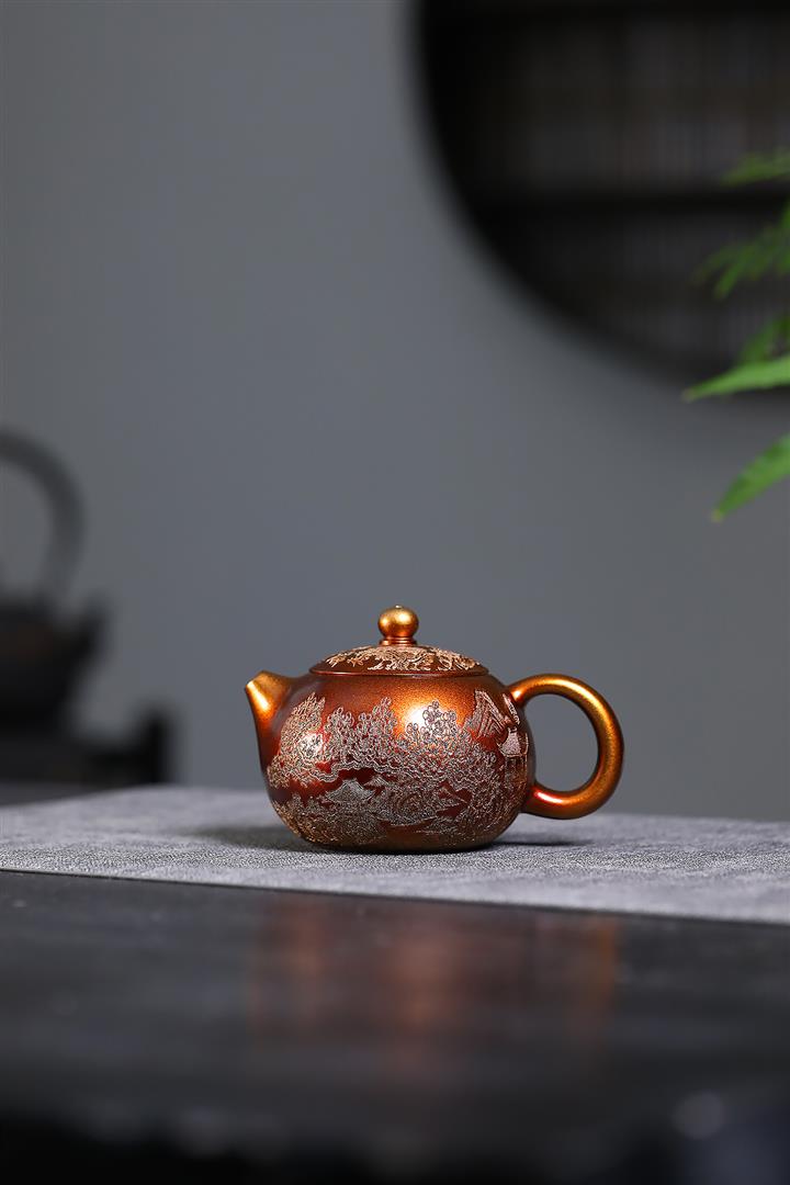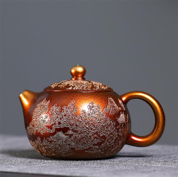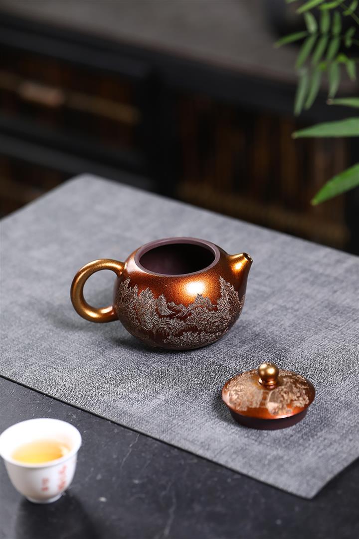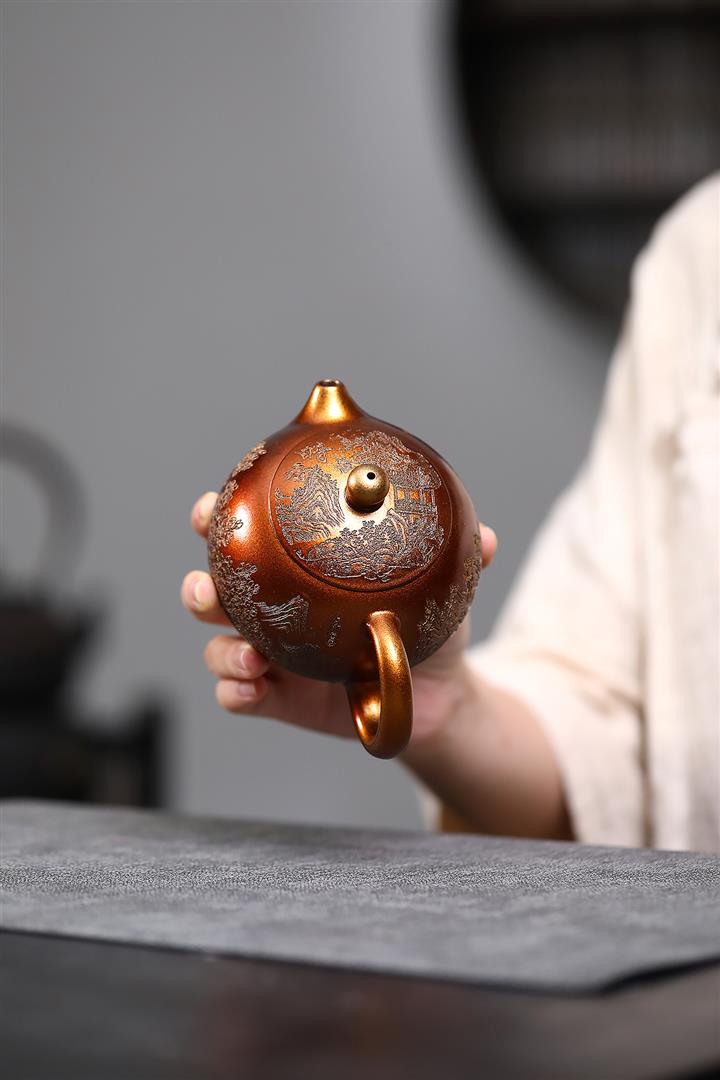 原礦大紅袍手工刻字金潘茶壺POT7120