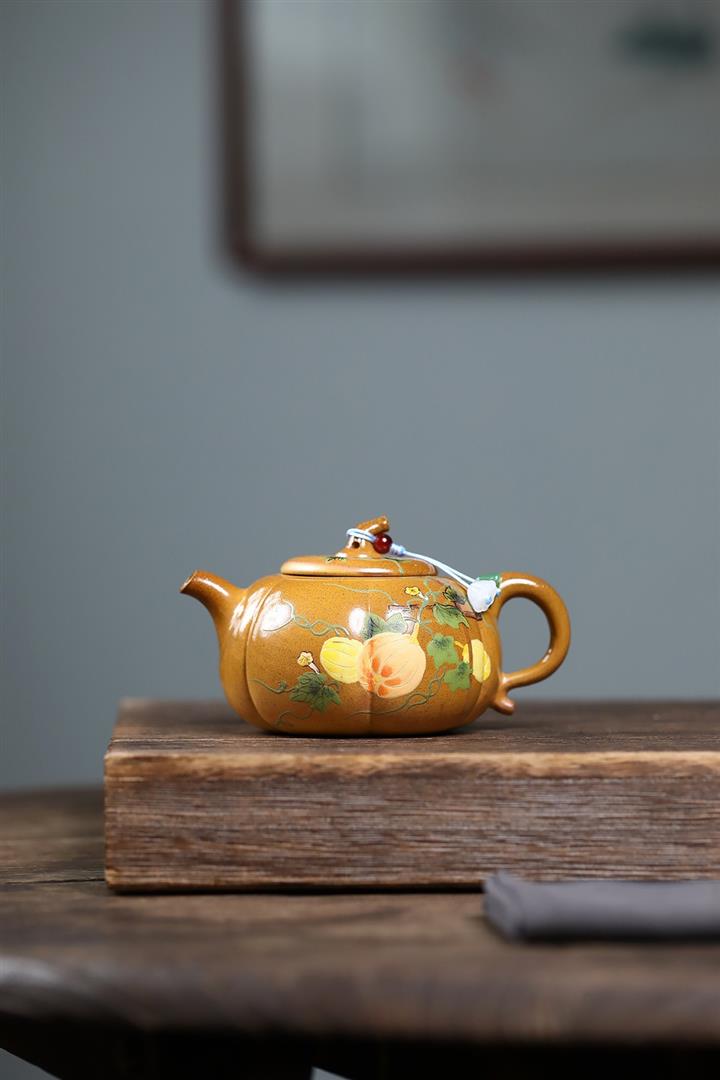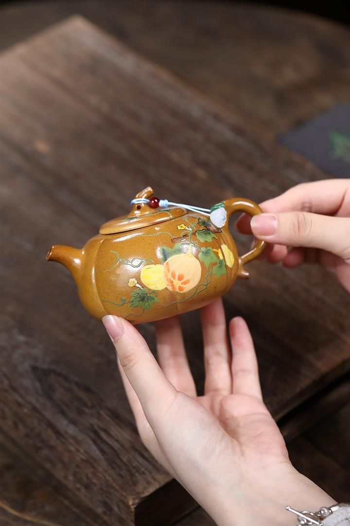200cc原礦黃金段泥高溫柴燒金瓜羨瑞茶壺POT8322