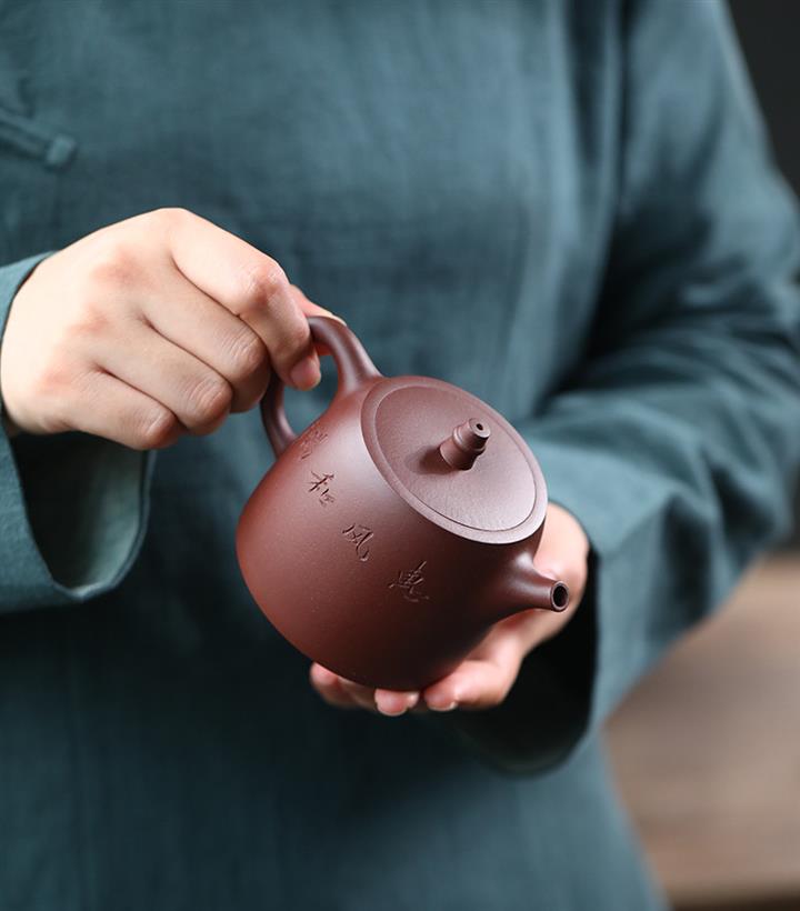 【泥料特點】砂土氣重,似淳實農民,日久使用,漸露鋒芒,養成變化,溫潤莊重。紫砂是壹種雙重氣孔結構的多孔性材質,氣孔微細,密度高。用紫砂壺沏茶,不失原味,且香不渙散,得茶之真香真味。紫砂使用越久,壺身色澤越發光亮照人,氣韻溫雅。紫砂壺長久使用器身會因撫摸擦拭,變得越發溫潤光澤。