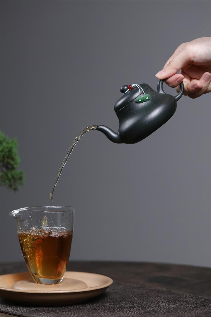 【作品介紹】此款壺形線條流暢,壺把,壺嘴,壺身壹氣呵成栩栩如生,是收藏把玩的好壺,泥料色澤古樸典雅,日久使用,漸露鋒芒,養成變化快,溫潤莊重,用其泡茶,使用的年代久,壺身就溫潤,泡出來的茶湯也就醇郁芳馨。