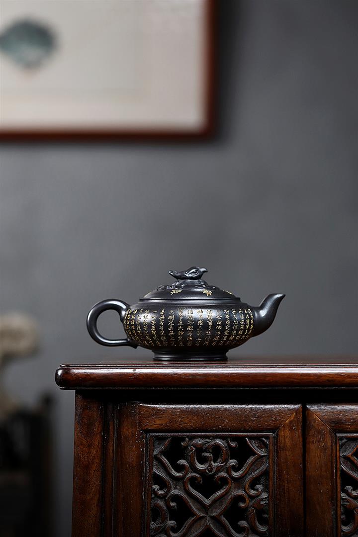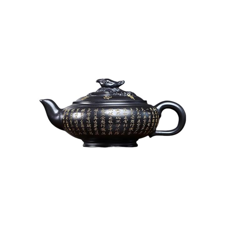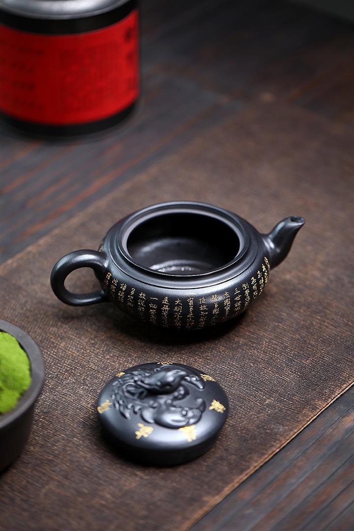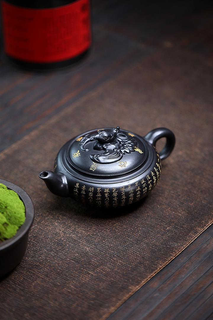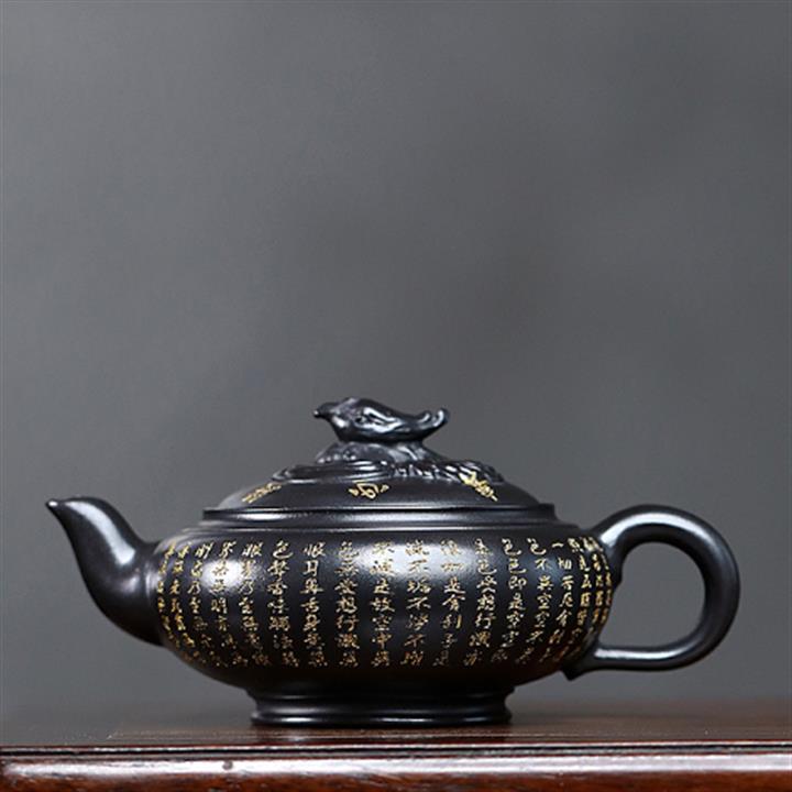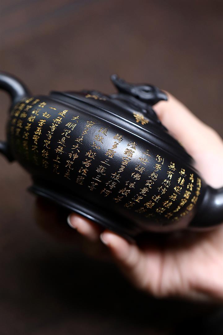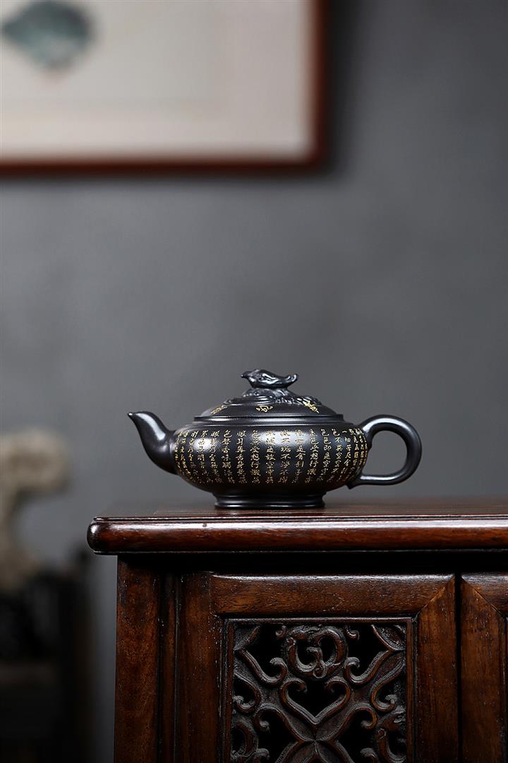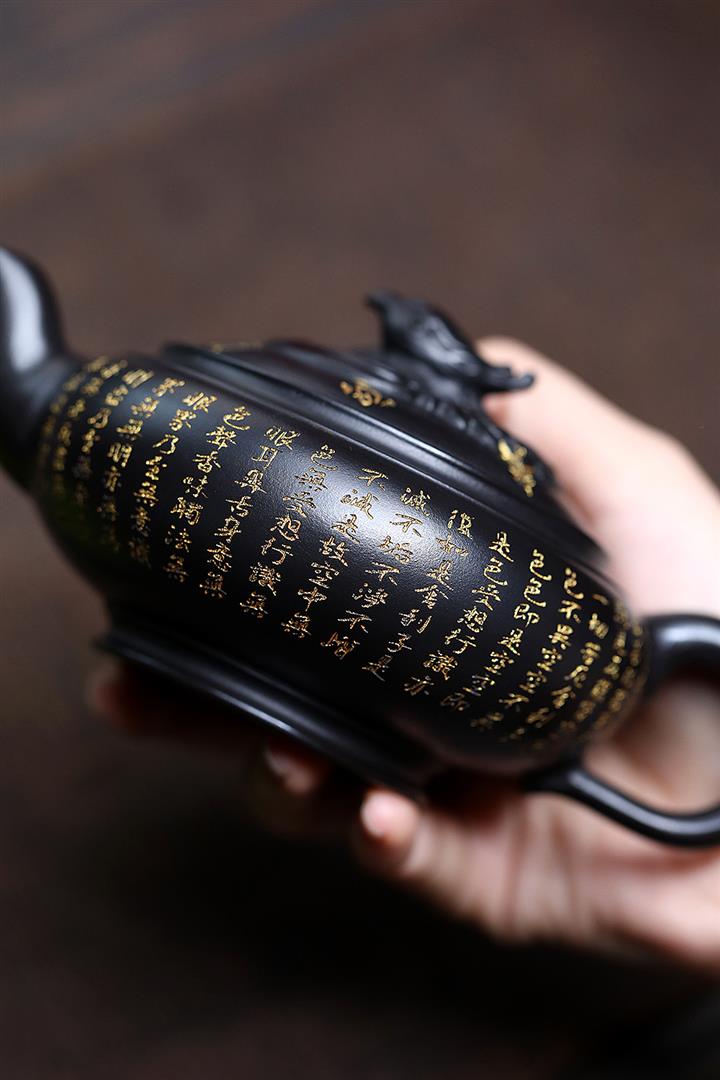 原礦陳腐老紫泥刻繪描金佛蓮茶壺POT6976