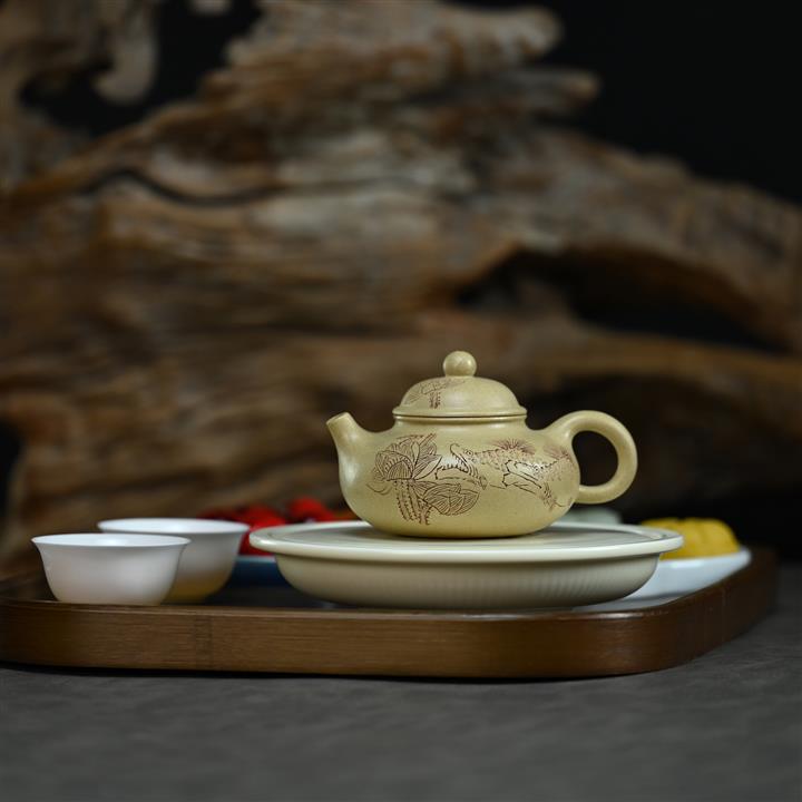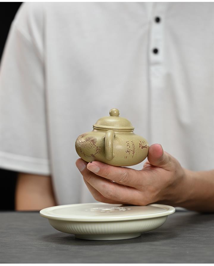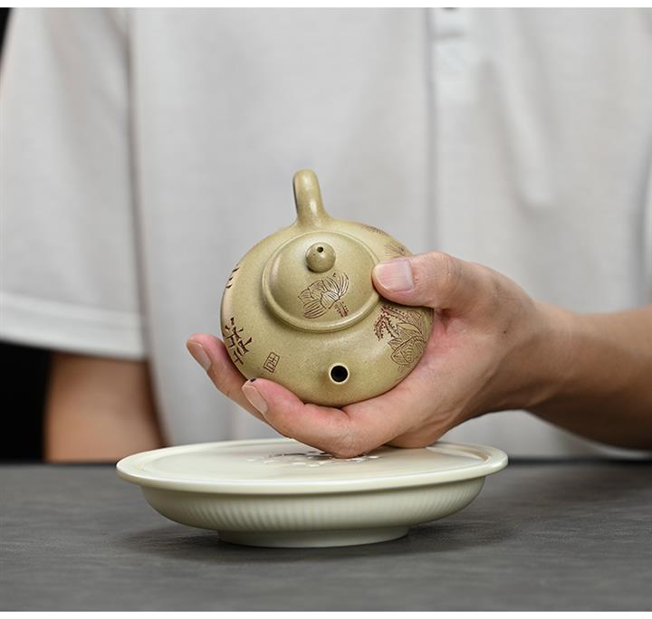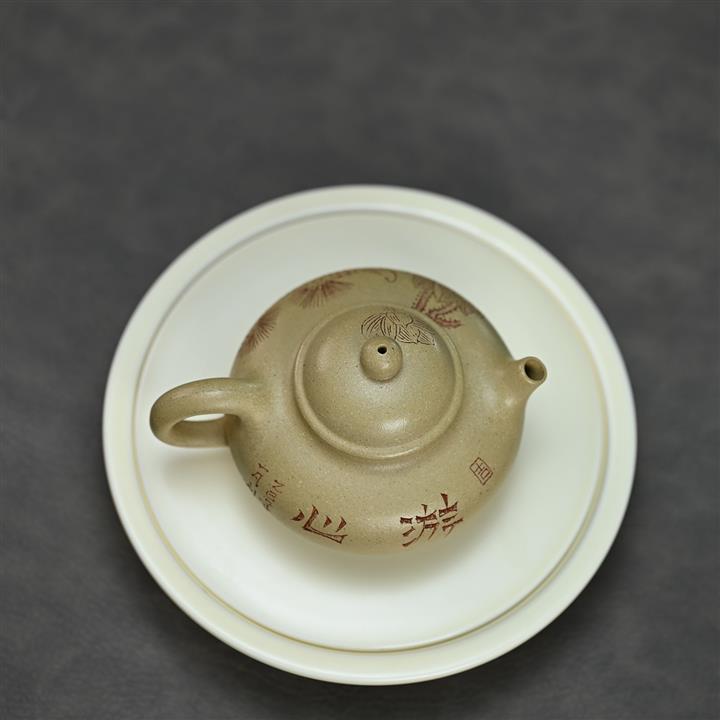 180cc原礦綠泥容天刻繪茶壺POT8353