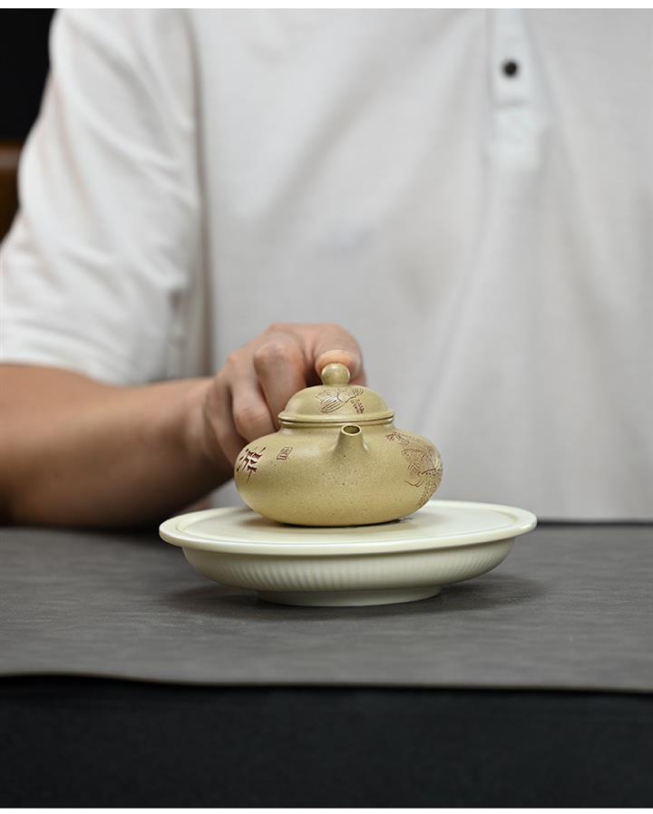 【泥料特點】砂土氣重,似淳實農民,日久使用,漸露鋒芒,養成變化,溫潤莊重。紫砂是壹種雙重氣孔結構的多孔性材質,氣孔微細,密度高。用紫砂壺沏茶,不失原味,且香不渙散,得茶之真香真味。紫砂使用越久,壺身色澤越發光亮照人,氣韻溫雅。紫砂壺長久使用器身會因撫摸擦拭,變得越發溫潤光澤。