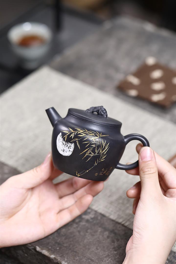 【作品介紹】此款壺形線條流暢,壺把,壺嘴,壺身壹氣呵成栩栩如生,是收藏把玩的好壺,泥料色澤古樸典雅,日久使用,漸露鋒芒,養成變化快,溫潤莊重,用其泡茶,使用的年代久,壺身就溫潤,泡出來的茶湯也就醇郁芳馨。