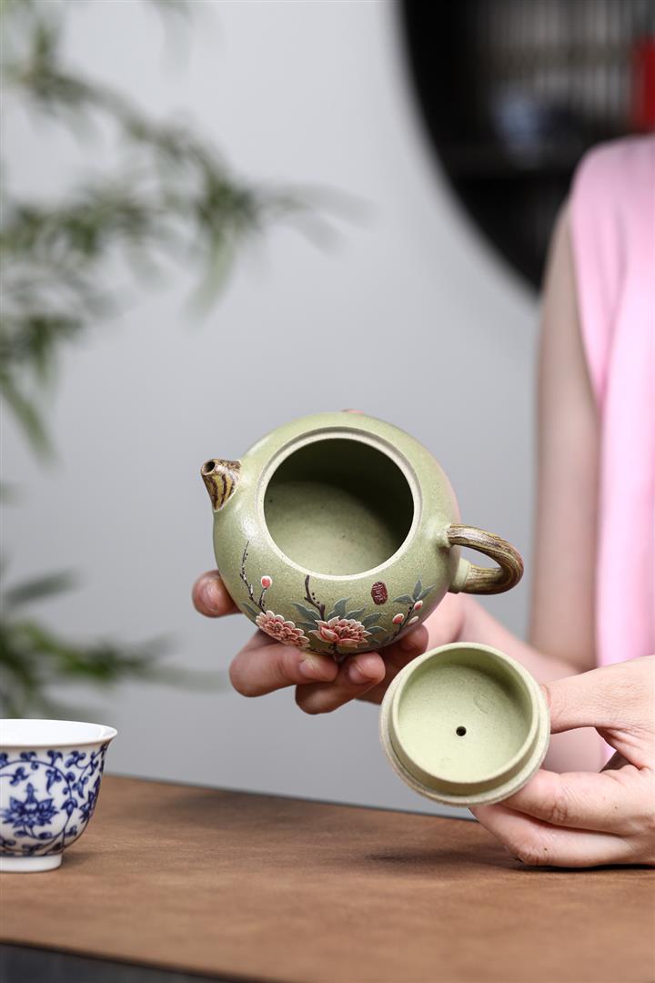 全手工紫砂壺養生壺香韻西施深井墨綠泥pot3791