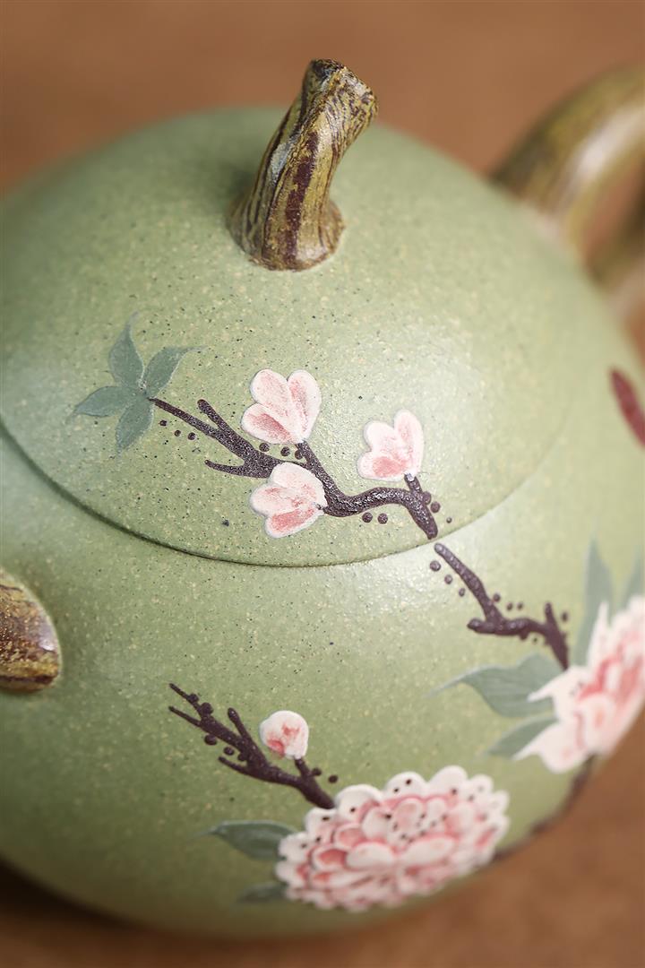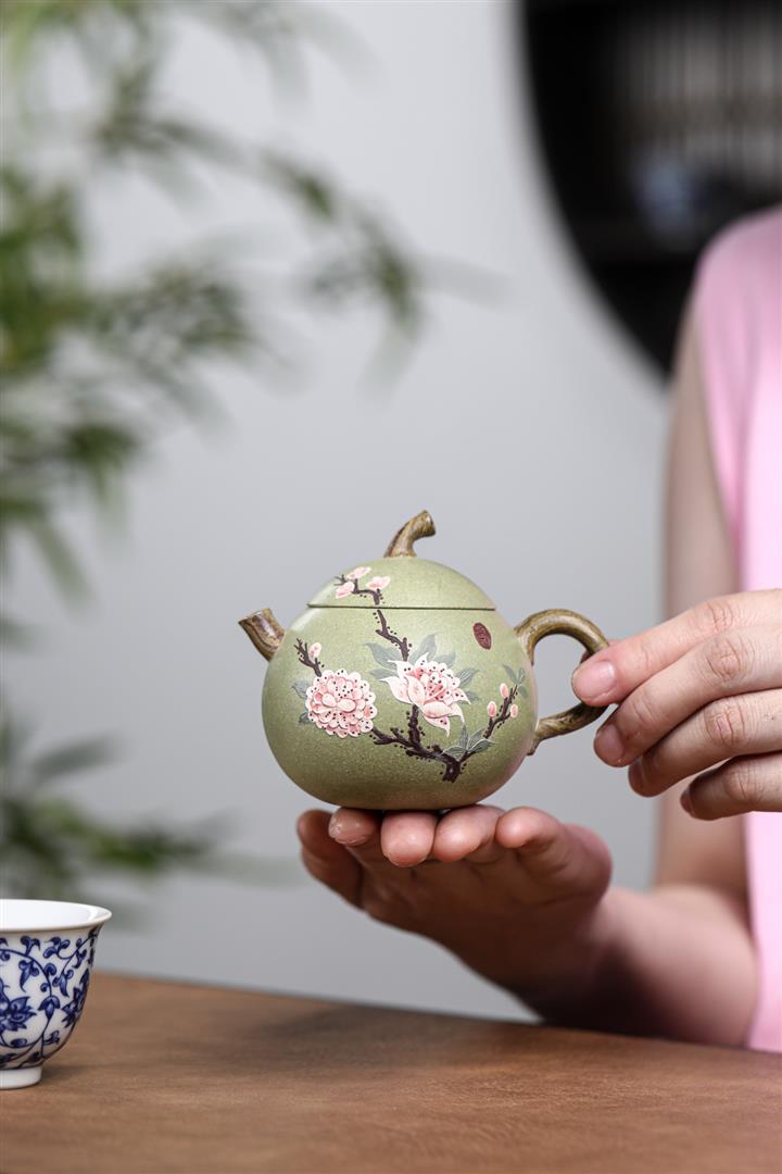 【泥料特點】砂土氣重,似淳實農民,日久使用,漸露鋒芒,養成變化,溫潤莊重。紫砂是壹種雙重氣孔結構的多孔性材質,氣孔微細,密度高。用紫砂壺沏茶,不失原味,且香不渙散,得茶之真香真味。紫砂使用越久,壺身色澤越發光亮照人,氣韻溫雅。紫砂壺長久使用器身會因撫摸擦拭,變得越發溫潤光澤。
