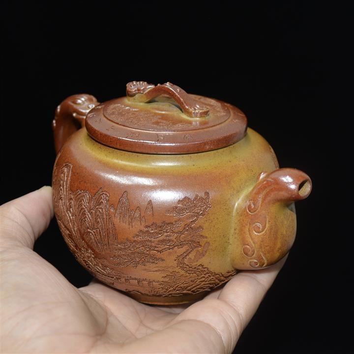 【作品介紹】此款壺形線條流暢,壺把,壺嘴,壺身壹氣呵成栩栩如生,是收藏把玩的好壺,泥料色澤古樸典雅,日久使用,漸露鋒芒,養成變化快,溫潤莊重,用其泡茶,使用的年代久,壺身就溫潤,泡出來的茶湯也就醇郁芳馨。