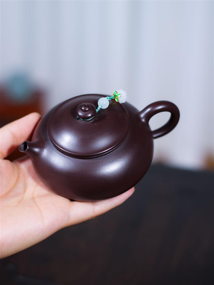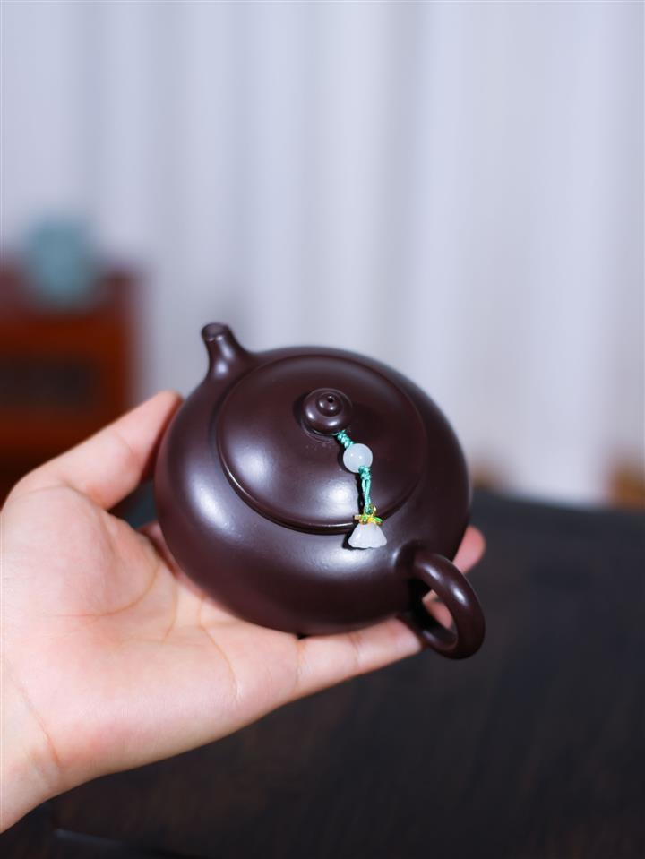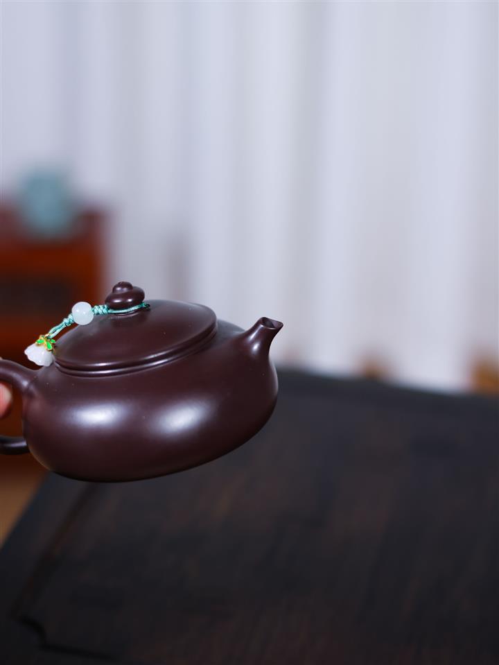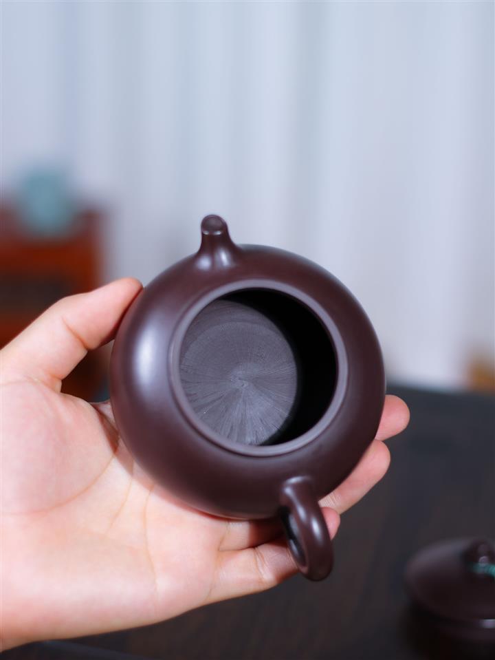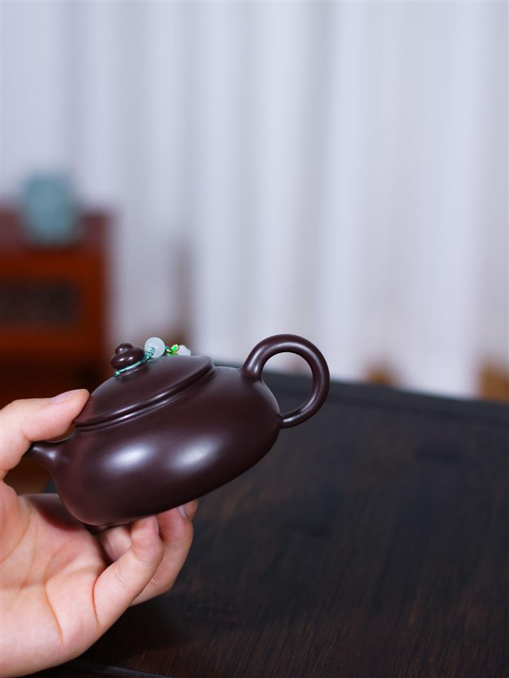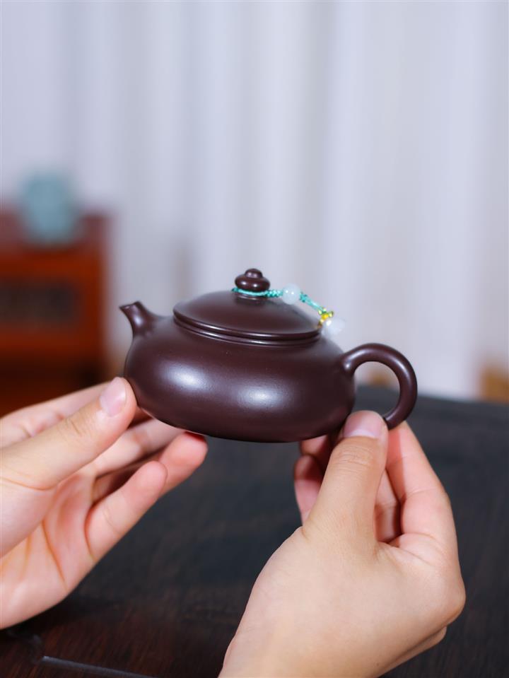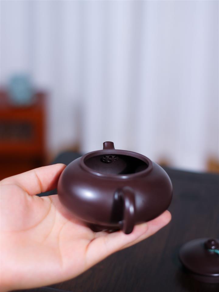 原礦段泥手工超薄胎平蓋古風漢瓦壺紫砂壺100cc pot3737