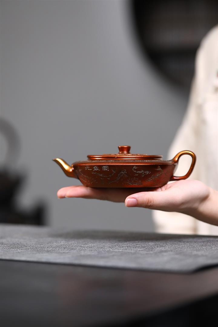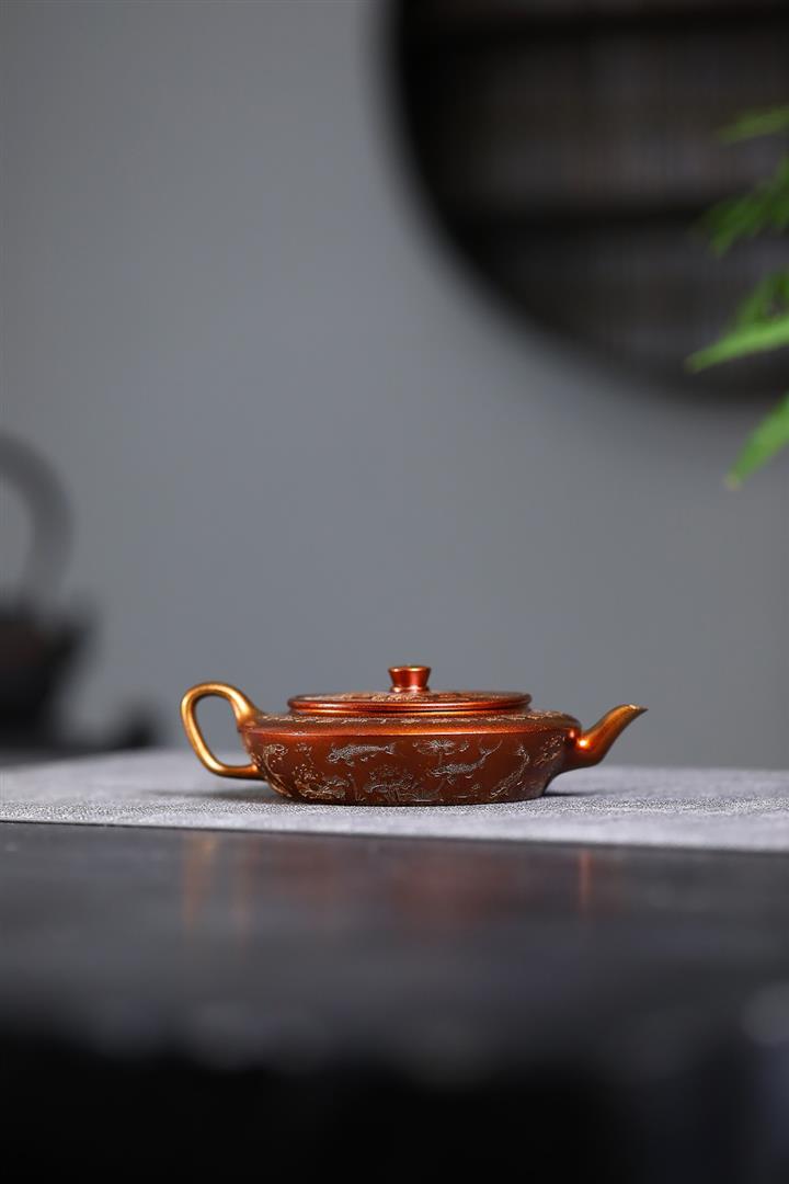 160cc原礦紅皮龍紫砂雙線竹鼓茶壺POT8318