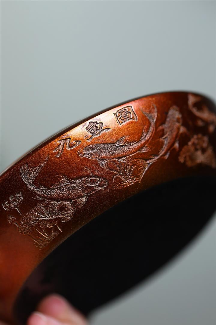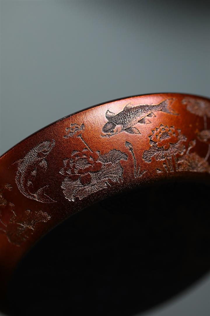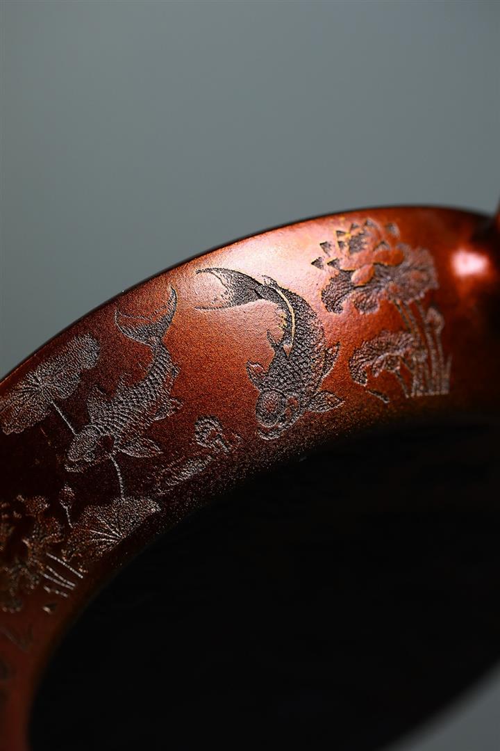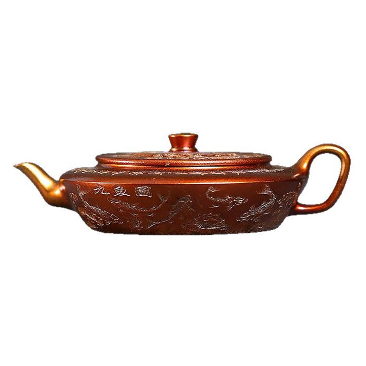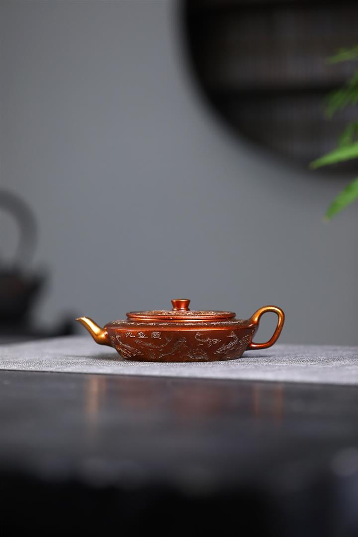 280cc原礦墨綠泥滿刻鯉躍荷塘茶壺POT8320