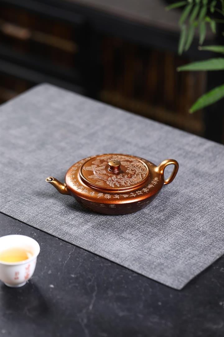200cc原礦黃金段泥高溫柴燒金砂石趣壺POT8319