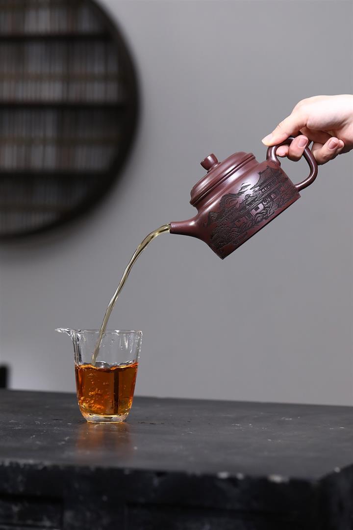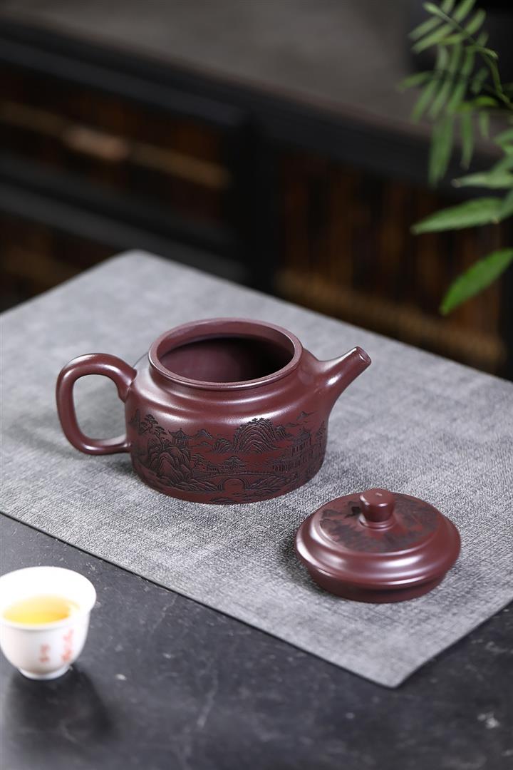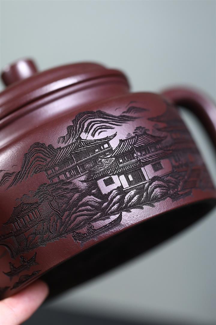 460cc原礦石紅泥滿刻鐘鳴山河茶壺POT8402