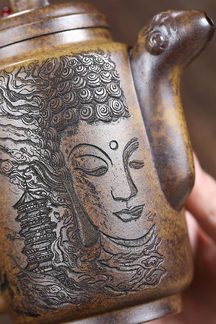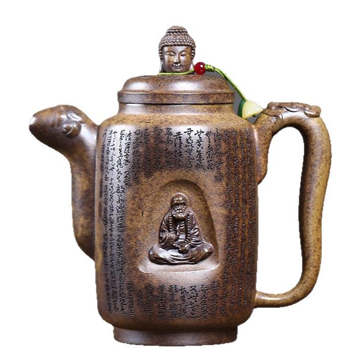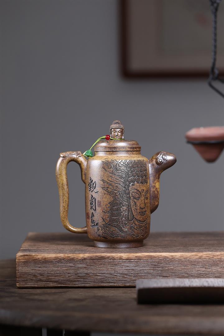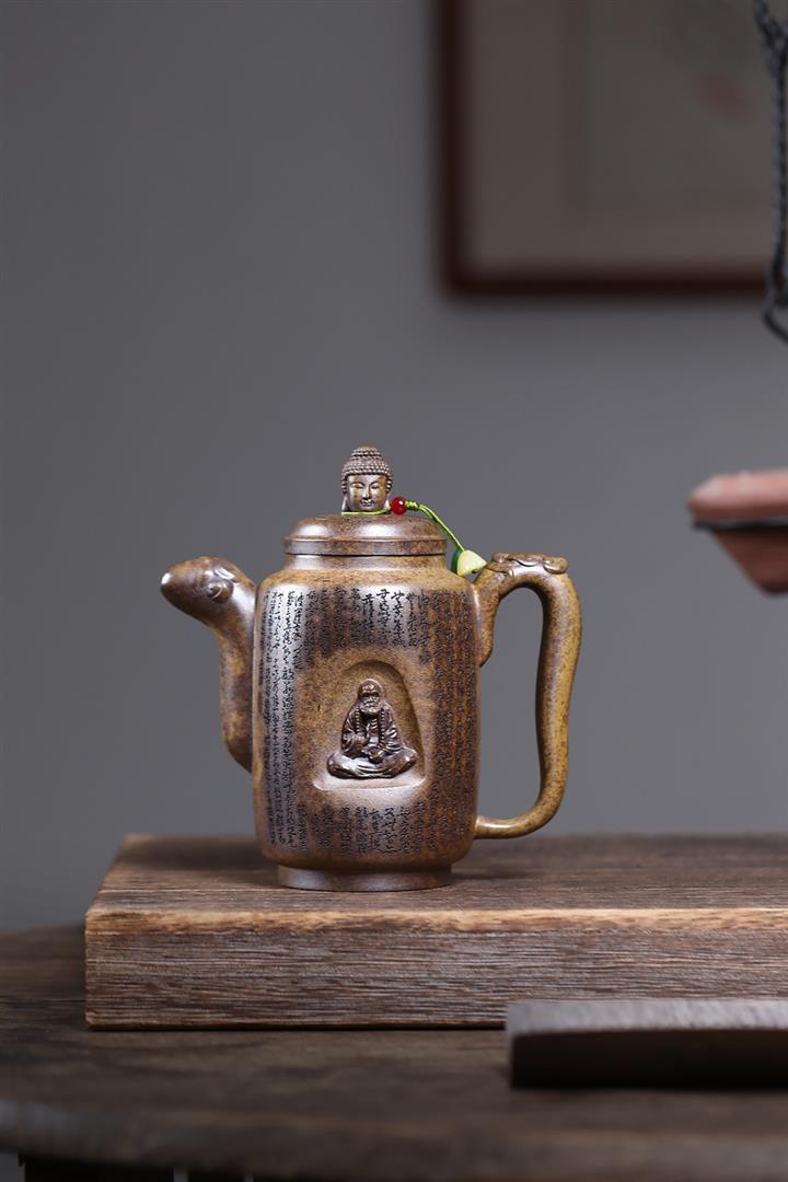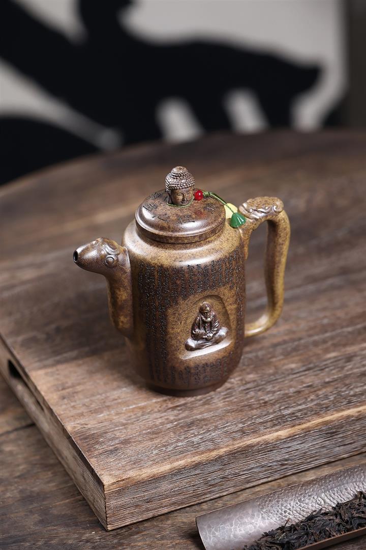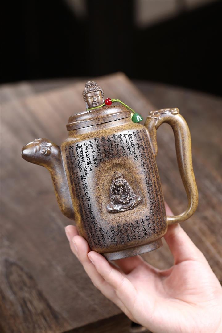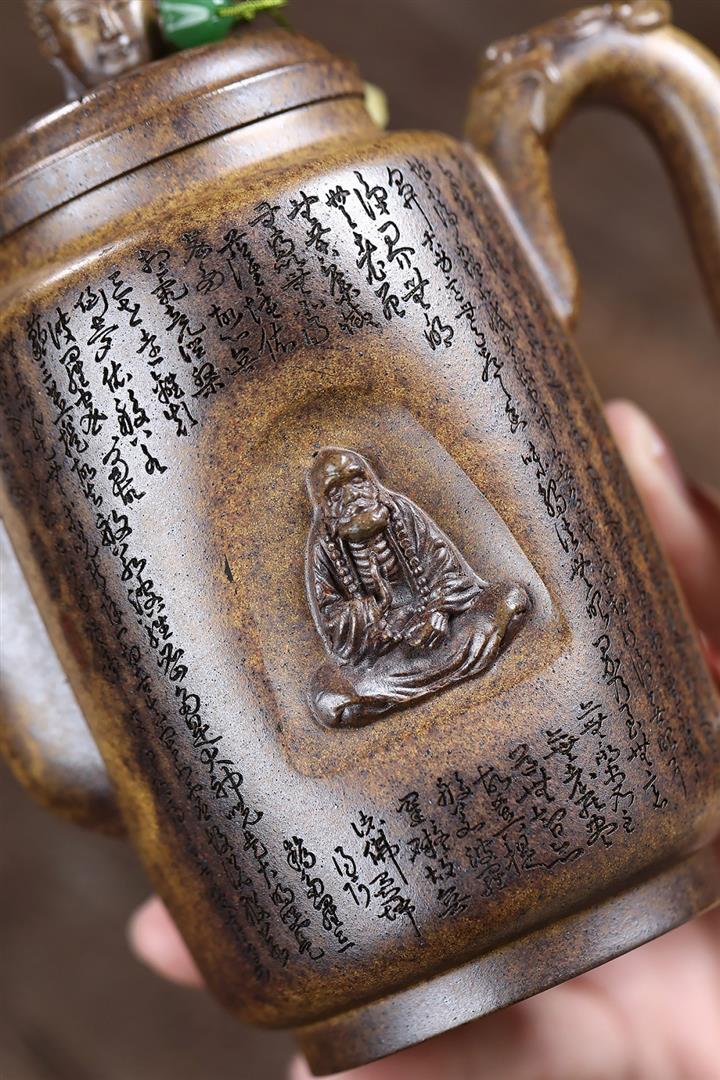 原礦陳腐紫泥滿刻羅漢漢瓦壺POT7641