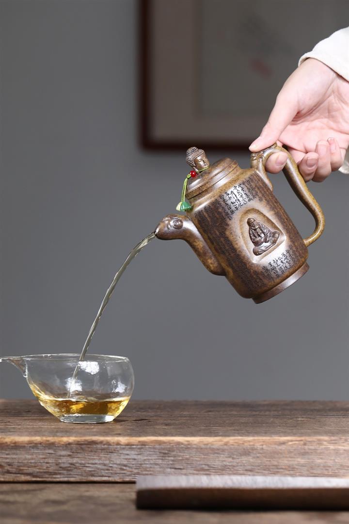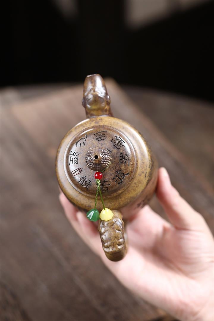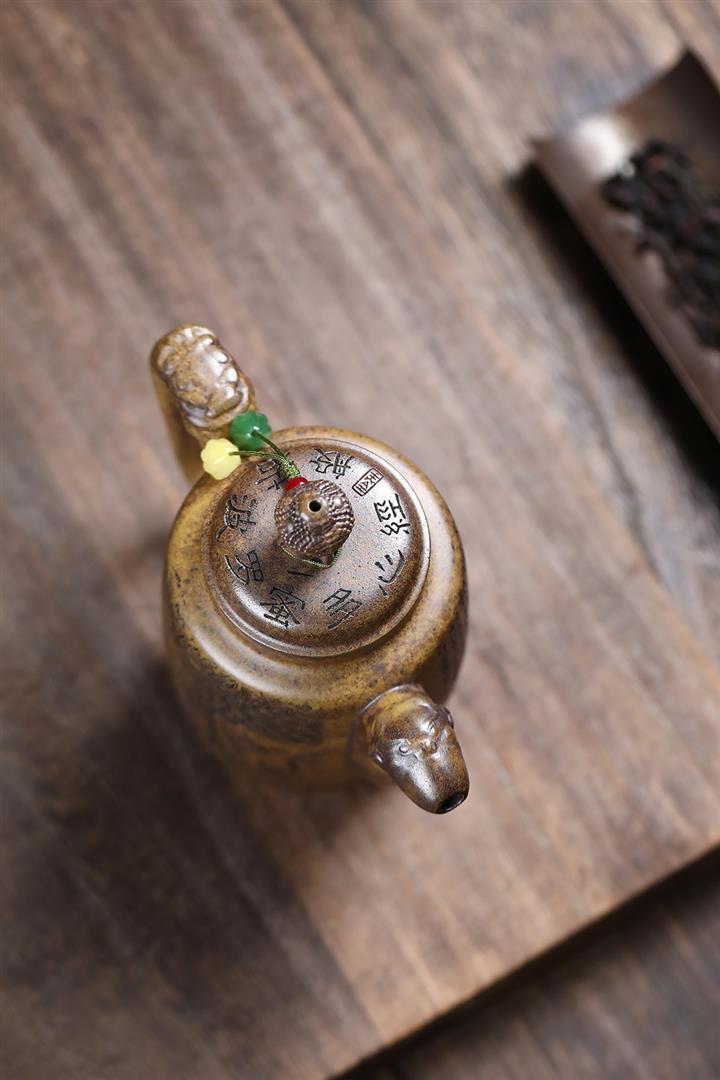 原礦大紅袍焐灰吉祥如意漢瓦茶壺POT7642