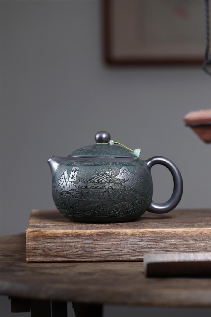 【作品介紹】此款壺形線條流暢,壺把,壺嘴,壺身壹氣呵成栩栩如生,是收藏把玩的好壺,泥料色澤古樸典雅,日久使用,漸露鋒芒,養成變化快,溫潤莊重,用其泡茶,使用的年代久,壺身就溫潤,泡出來的茶湯也就醇郁芳馨。