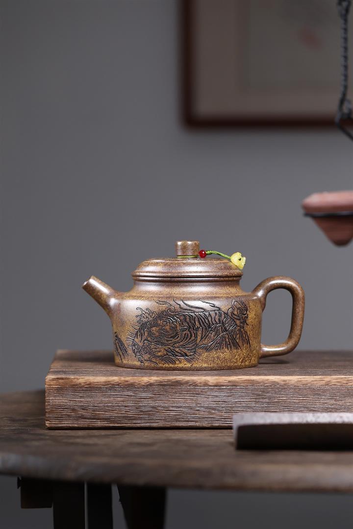 原礦高溫柴燒黃金段隱龍靈芝漢瓦壺POT6576