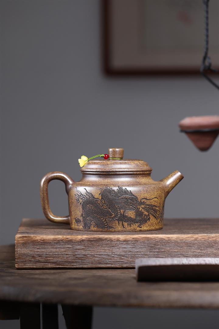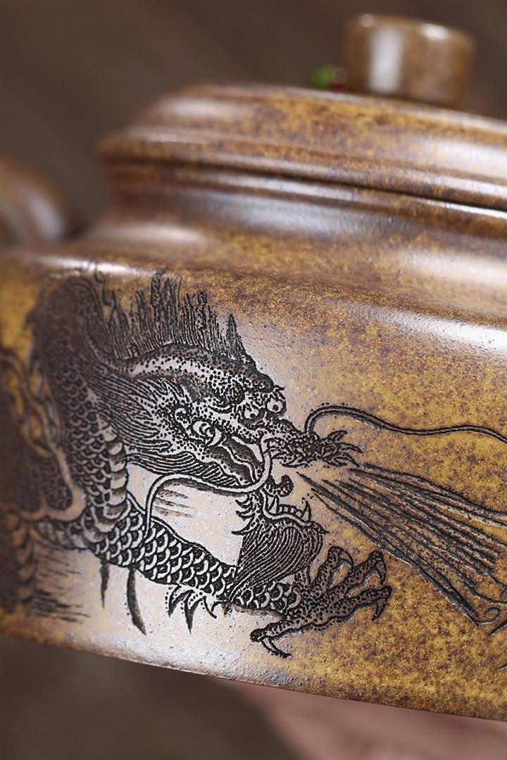 原礦陳腐紫泥刻繪雲龍德鐘壺POT6575