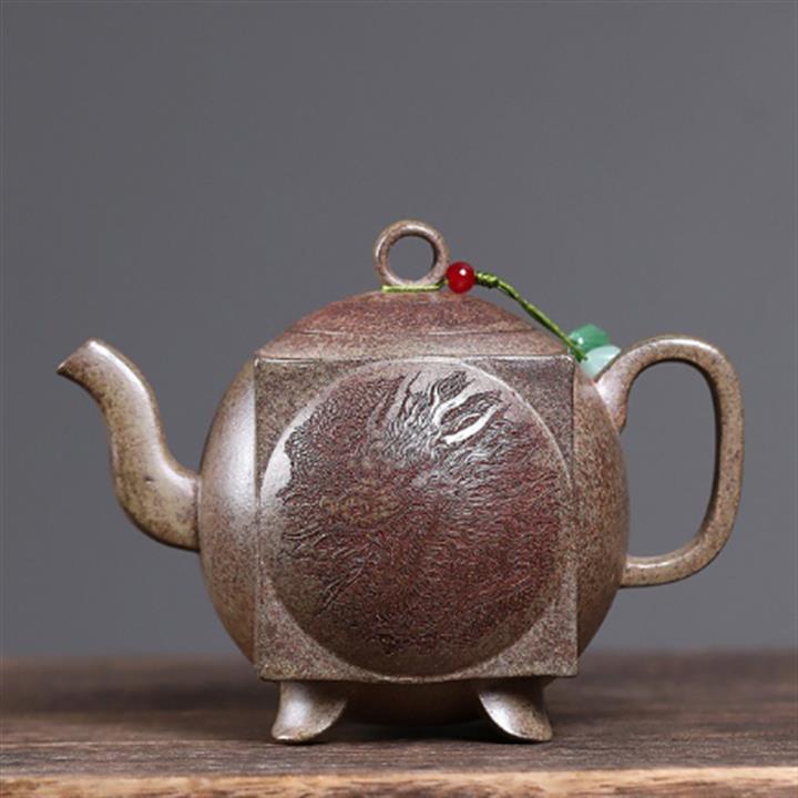 200cc原礦沈香泥柴燒天圓地方茶壺POT8435