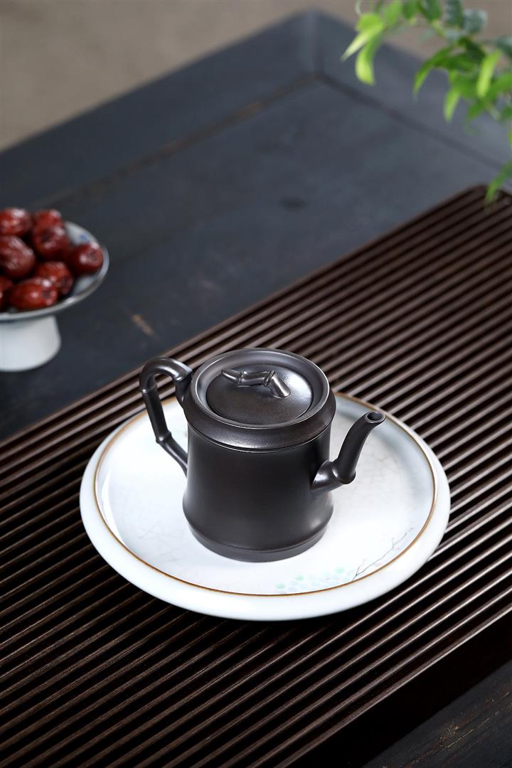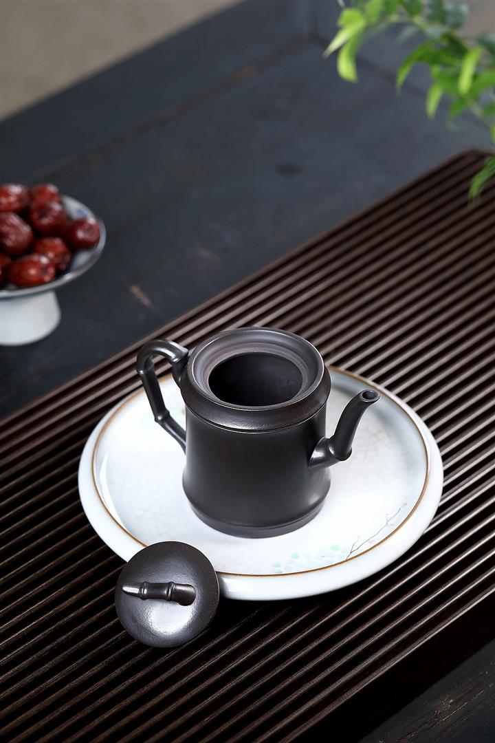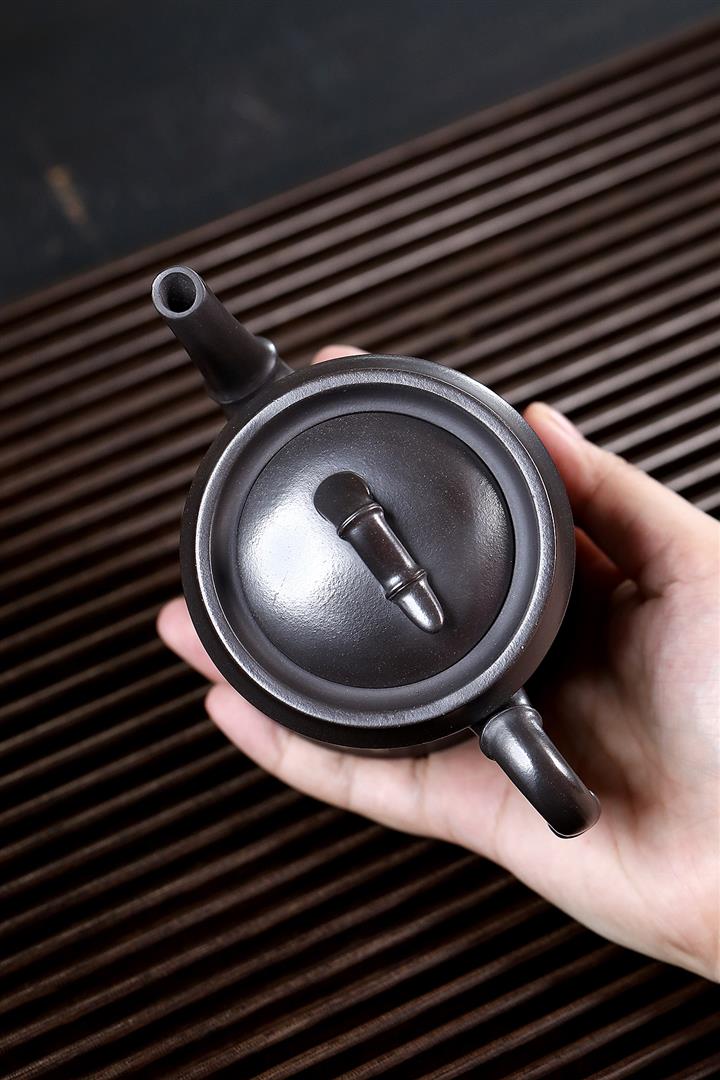 280cc原礦黑泥手工泥繪竹節茶壺POT8464