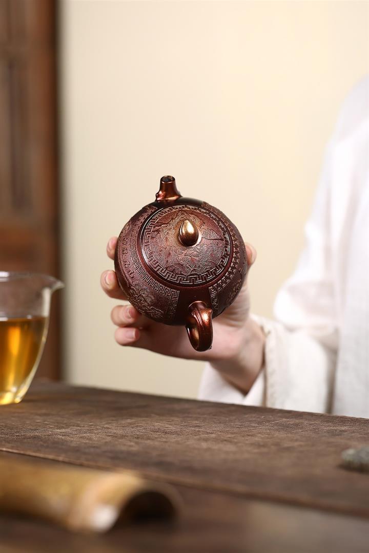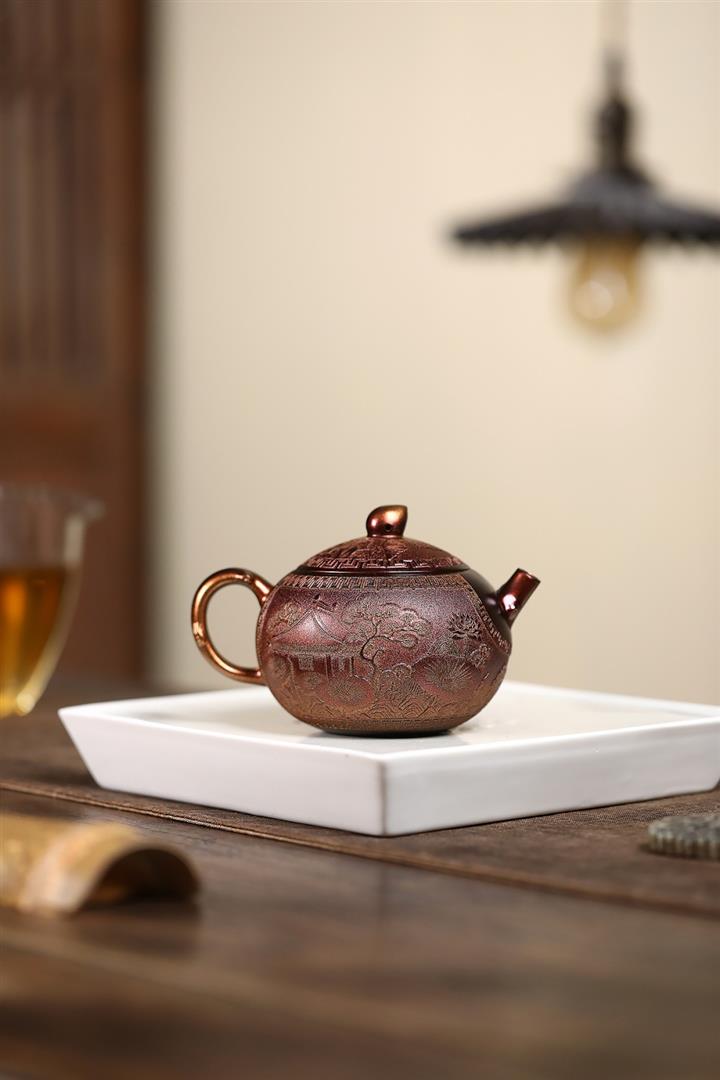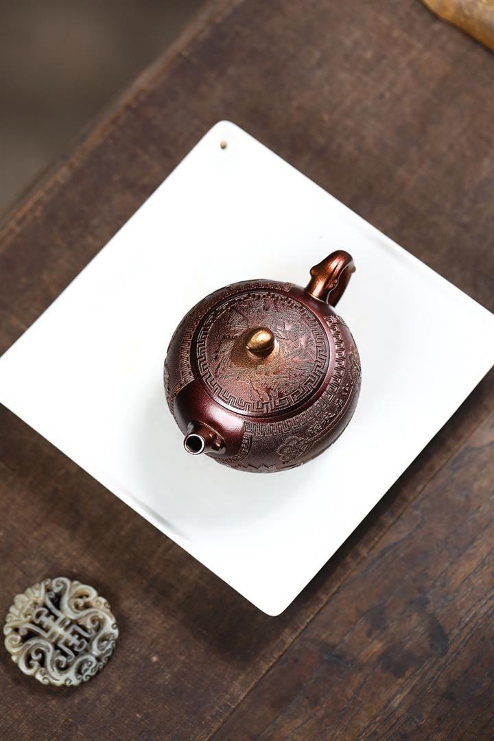 原礦大紅袍泥繪汲直紫砂壺POT4813