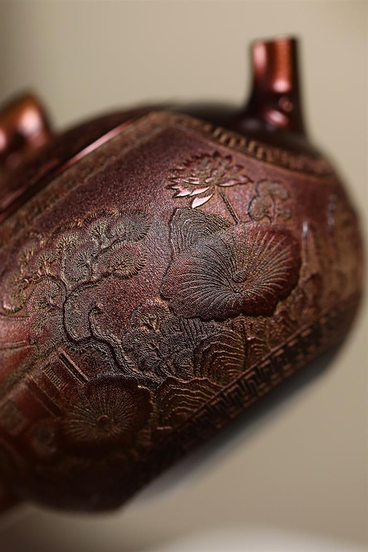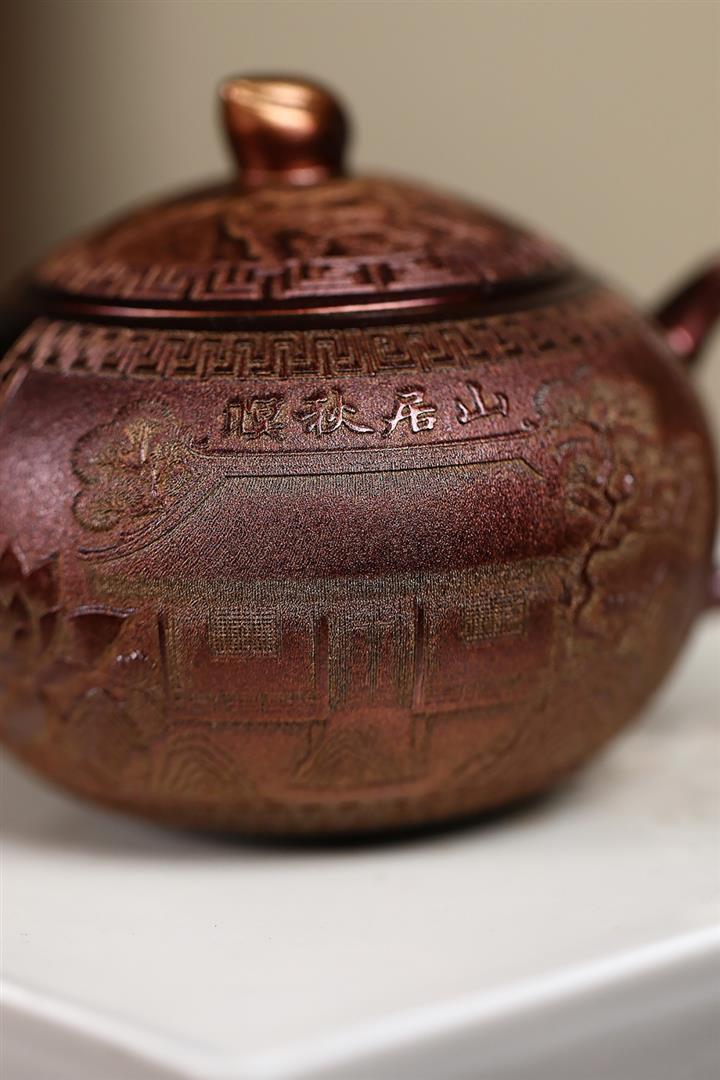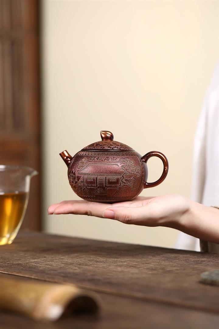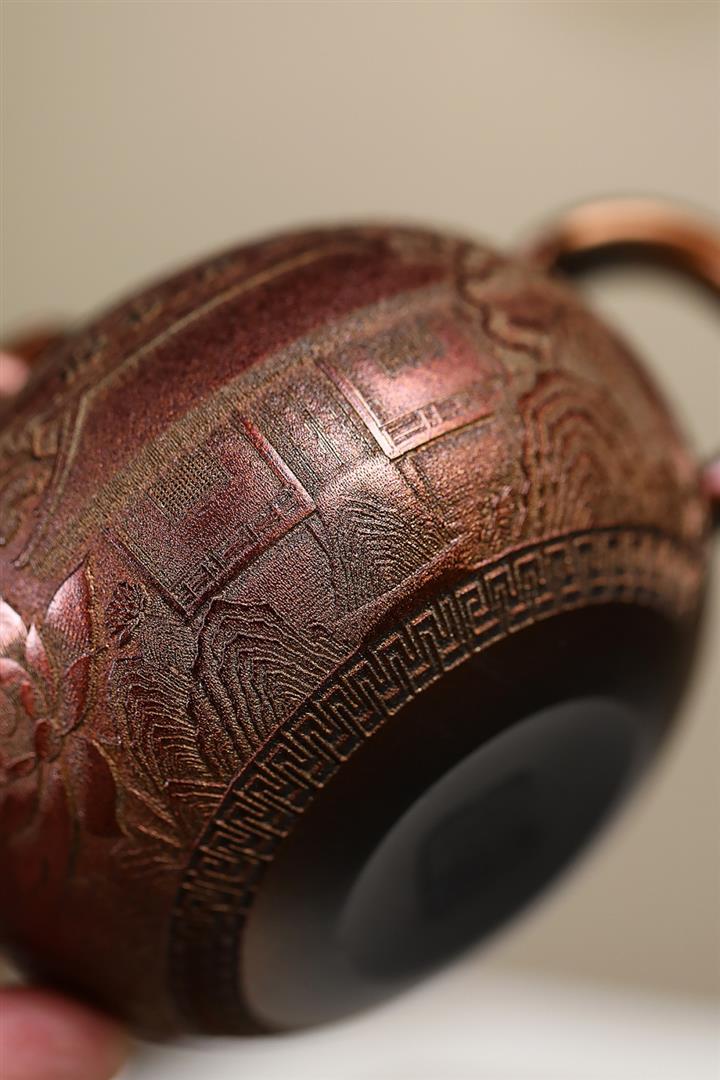 原礦紫朱泥刻繪扁承紫砂壺POT4817