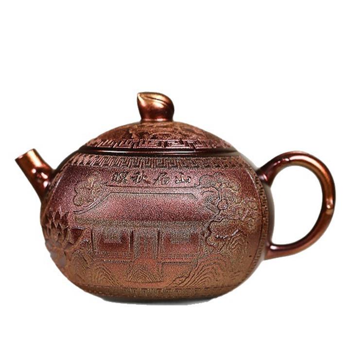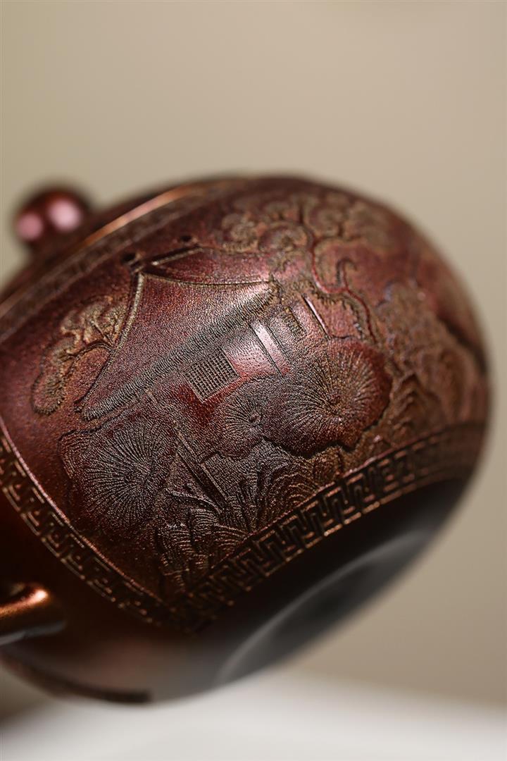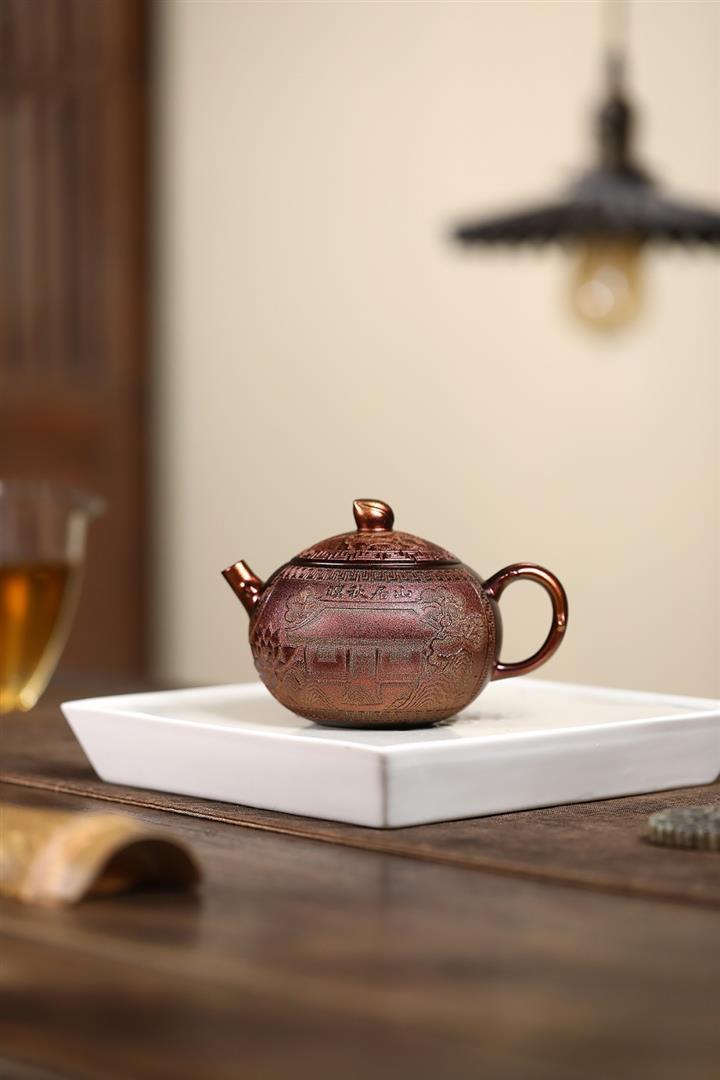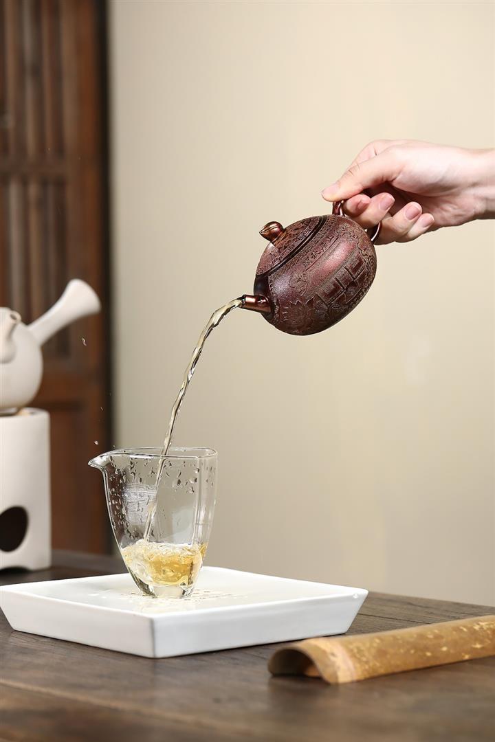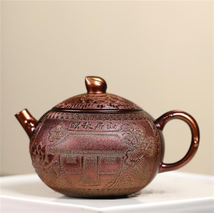 原礦紫朱泥刻繪扁承紫砂壺POT4817