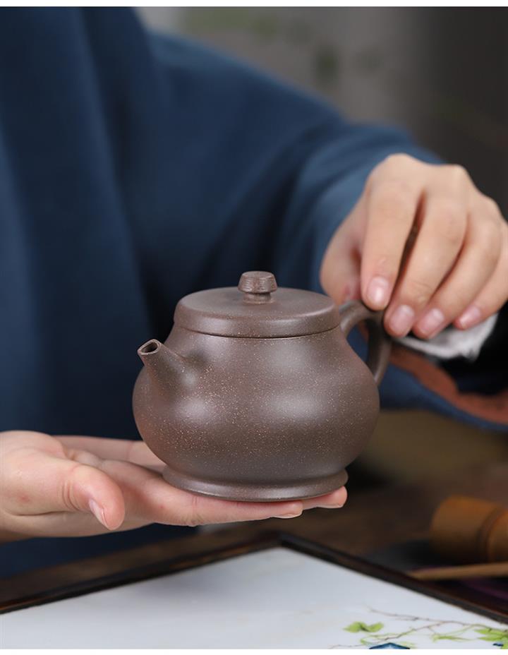 【泥料特點】砂土氣重,似淳實農民,日久使用,漸露鋒芒,養成變化,溫潤莊重。紫砂是壹種雙重氣孔結構的多孔性材質,氣孔微細,密度高。用紫砂壺沏茶,不失原味,且香不渙散,得茶之真香真味。紫砂使用越久,壺身色澤越發光亮照人,氣韻溫雅。紫砂壺長久使用器身會因撫摸擦拭,變得越發溫潤光澤。