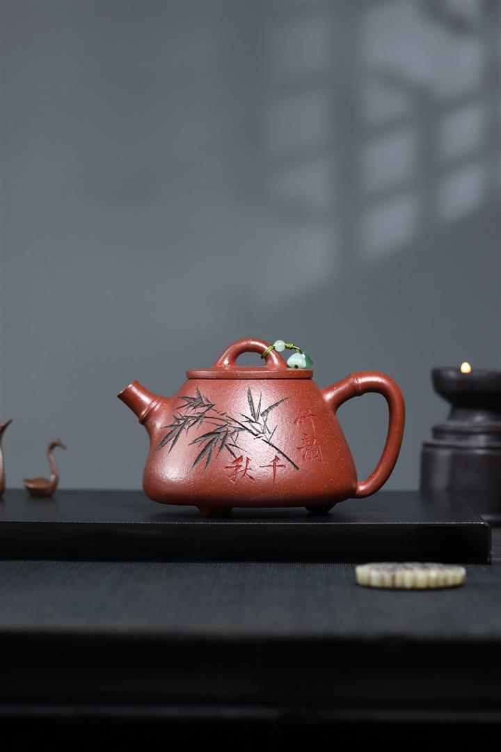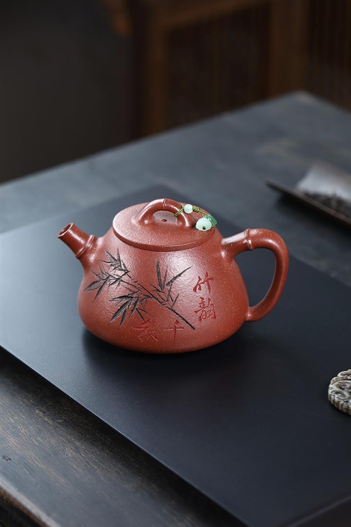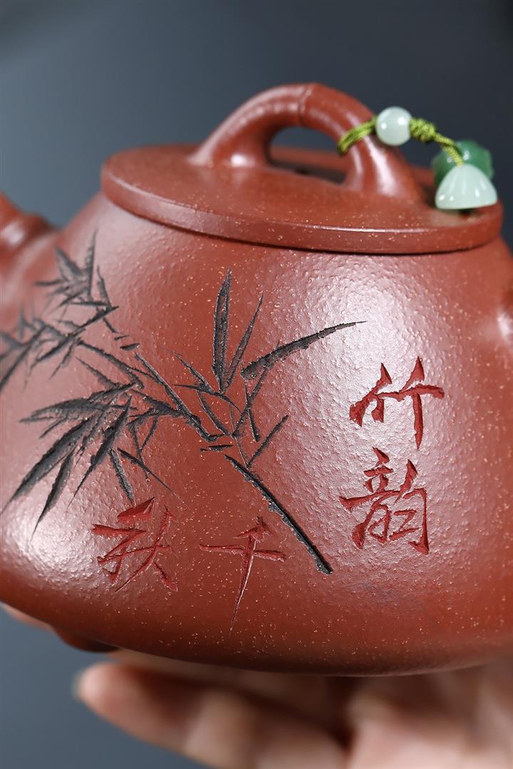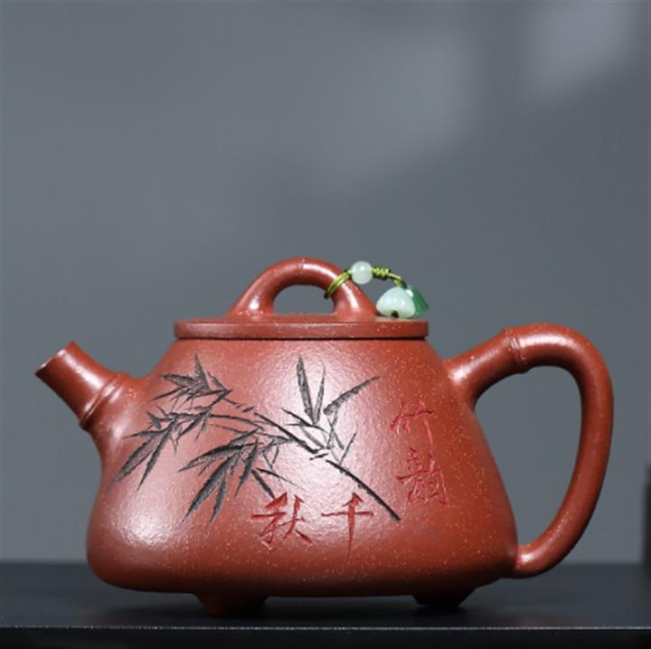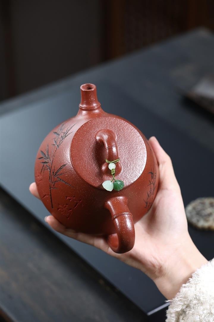 380cc段泥赤焰火雲燒滿刻秦權茶壺POT8202