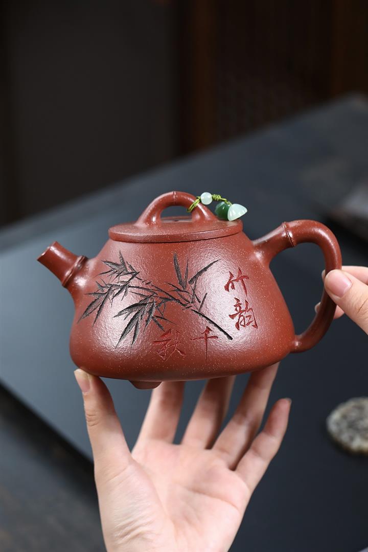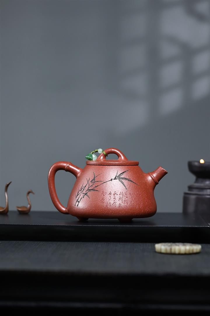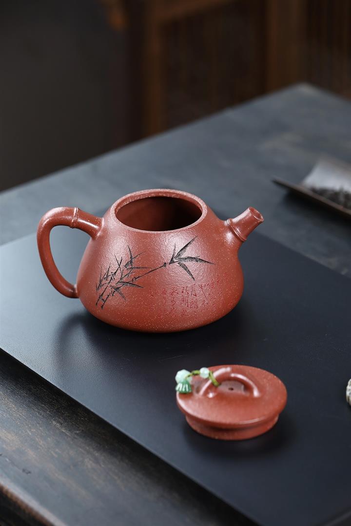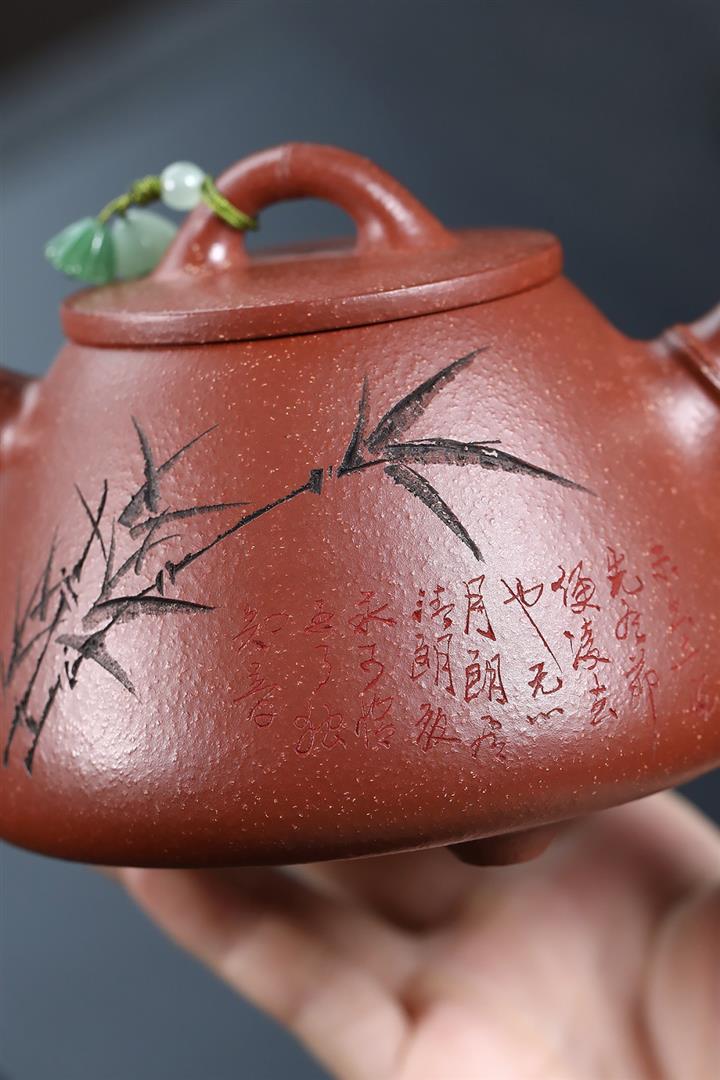 380cc段泥赤焰火雲燒滿刻秦權茶壺POT8202