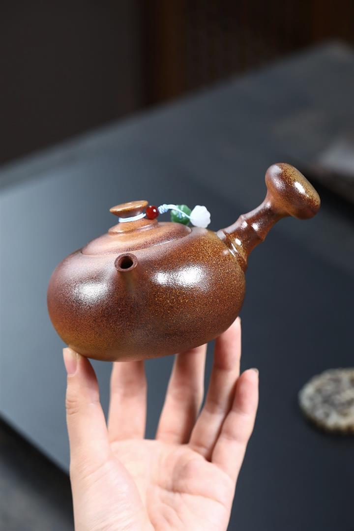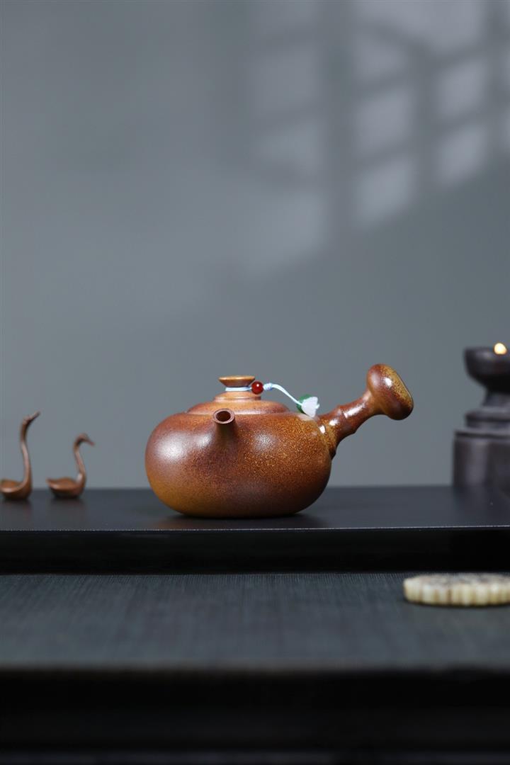 220cc原礦龍骨金砂柴燒金砂焰羽茶壺POT8525