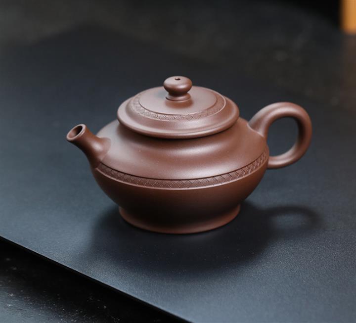 原礦龍骨金砂雙刀刻字炮嘴漢瓦茶壺POT6617