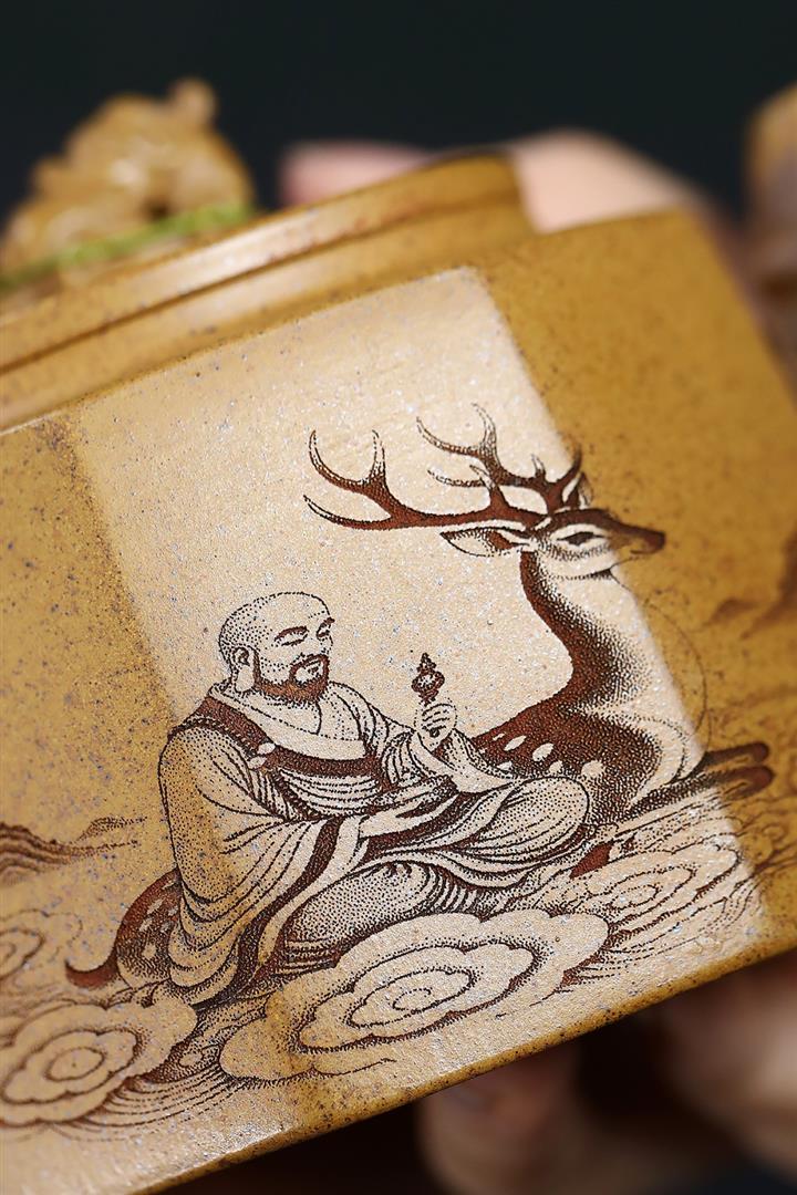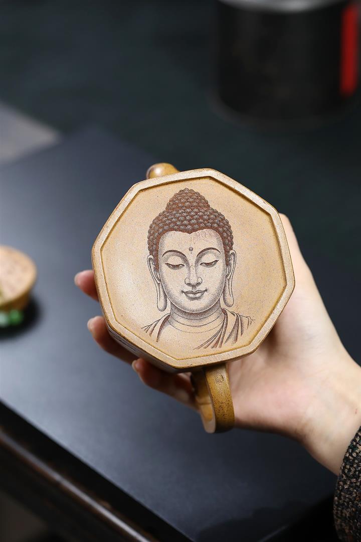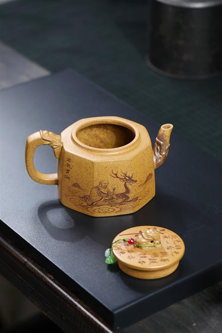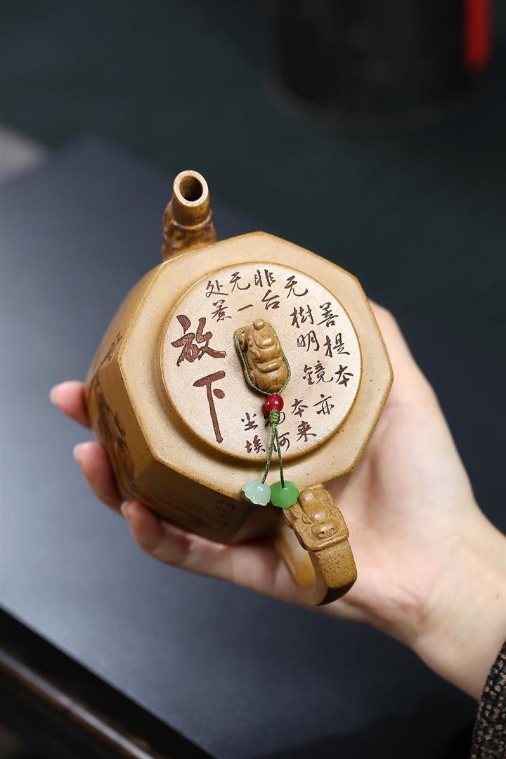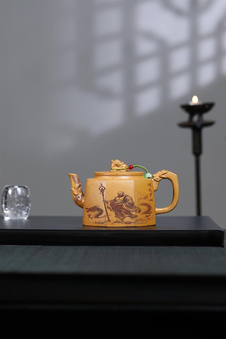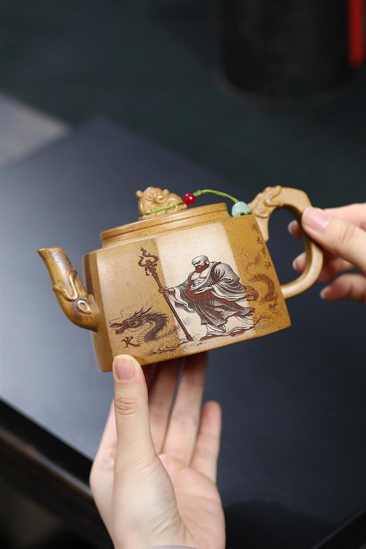 290cc原礦優質綠泥六方熊韻茶壺POT9255