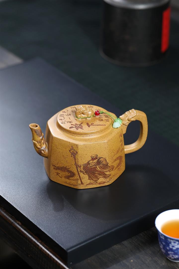 370cc原礦龍骨金砂柴燒羅漢八方茶壺POT8631