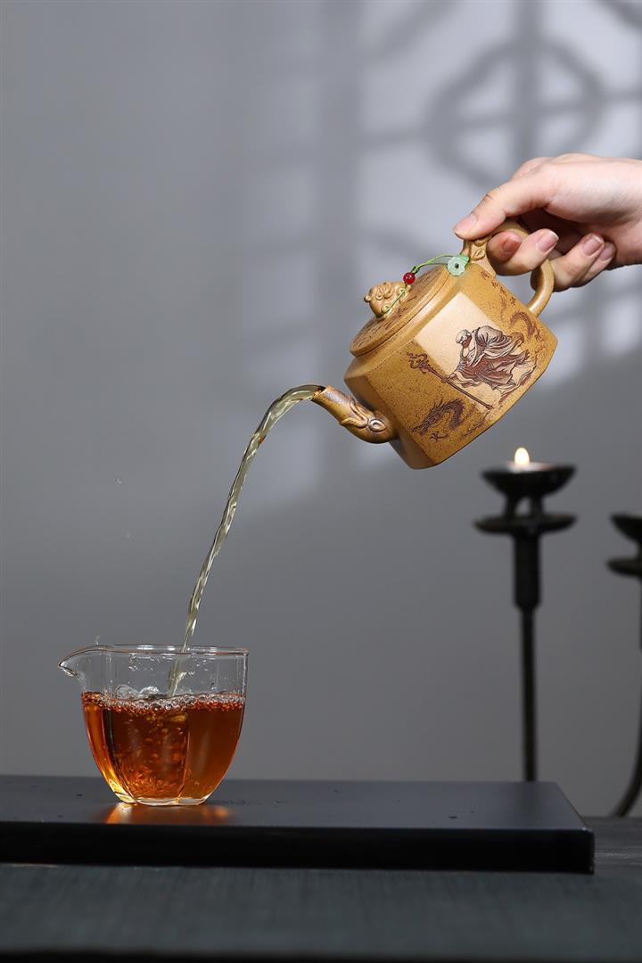 【泥料特點】砂土氣重,似淳實農民,日久使用,漸露鋒芒,養成變化,溫潤莊重。紫砂是壹種雙重氣孔結構的多孔性材質,氣孔微細,密度高。用紫砂壺沏茶,不失原味,且香不渙散,得茶之真香真味。紫砂使用越久,壺身色澤越發光亮照人,氣韻溫雅。紫砂壺長久使用器身會因撫摸擦拭,變得越發溫潤光澤。