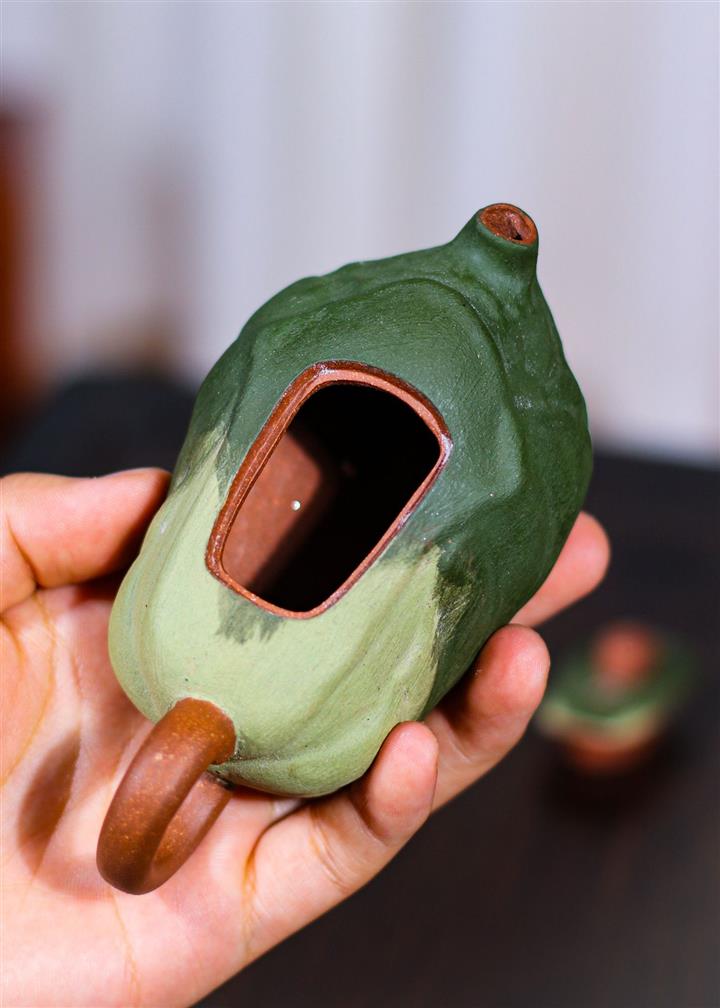 原礦金砂墨綠泥六方掇球紫砂壺220cc pot3649
