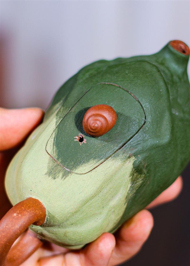 原礦青灰段泥金蟾獻瑞小漢瓦紫砂壺140cc pot3648