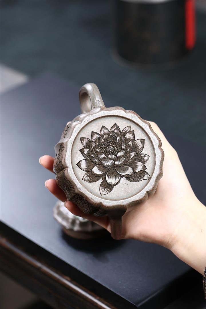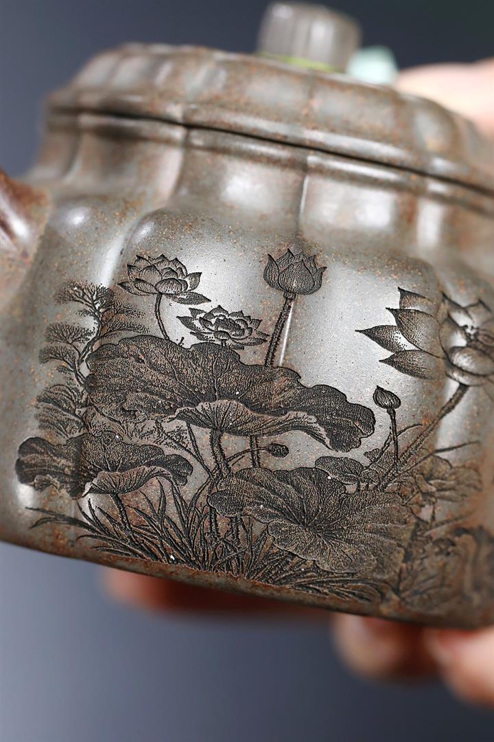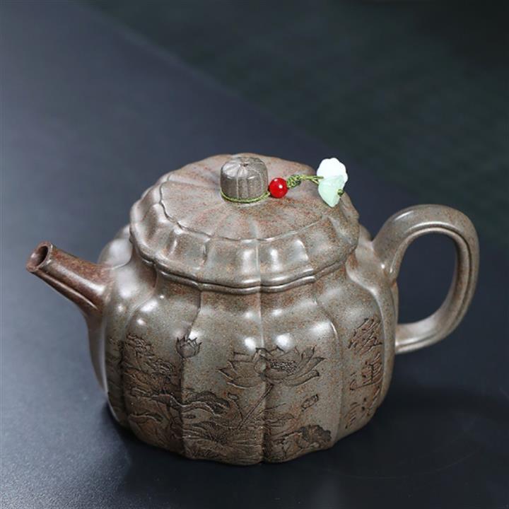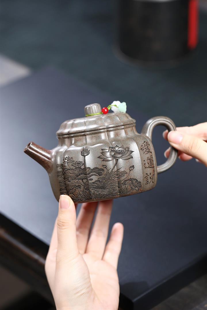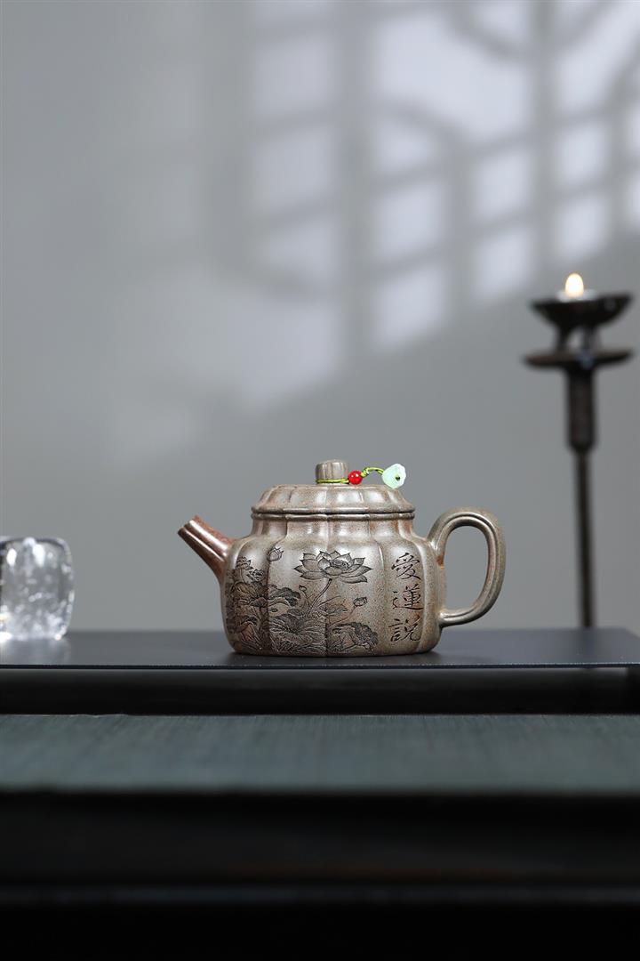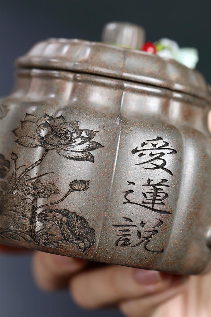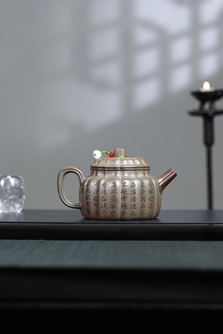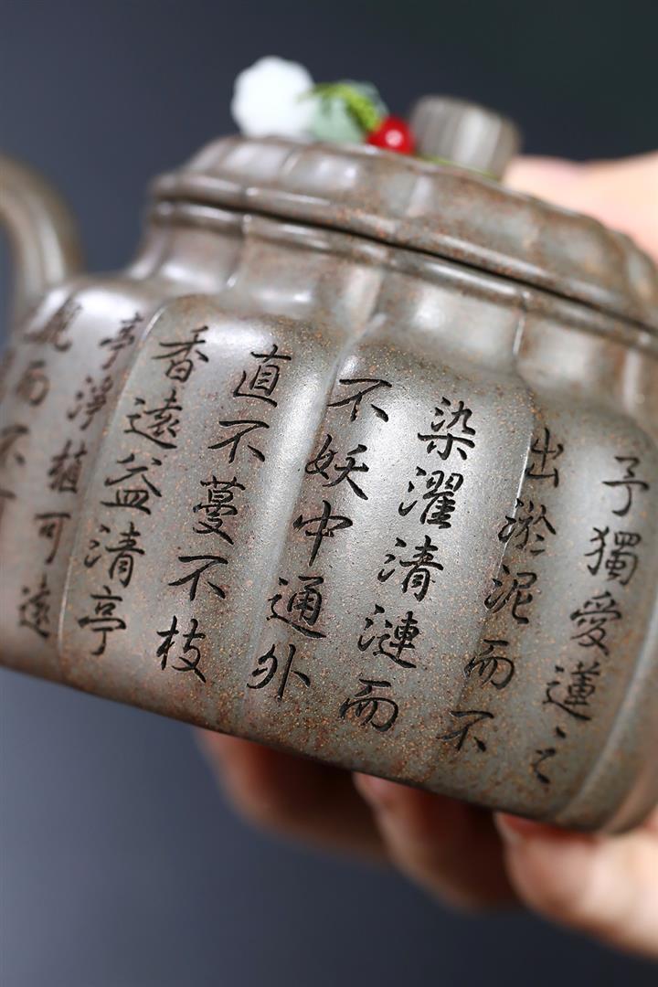 龍骨金砂荷葉美人肩紫砂壺POT5837