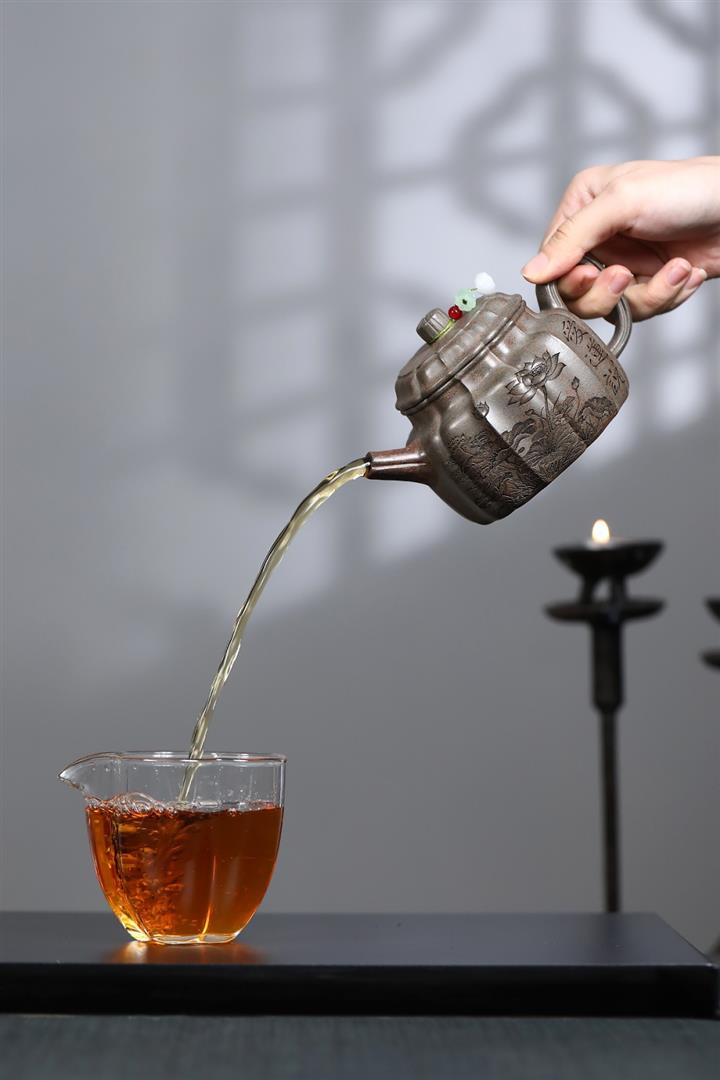 【泥料特點】砂土氣重,似淳實農民,日久使用,漸露鋒芒,養成變化,溫潤莊重。紫砂是壹種雙重氣孔結構的多孔性材質,氣孔微細,密度高。用紫砂壺沏茶,不失原味,且香不渙散,得茶之真香真味。紫砂使用越久,壺身色澤越發光亮照人,氣韻溫雅。紫砂壺長久使用器身會因撫摸擦拭,變得越發溫潤光澤。