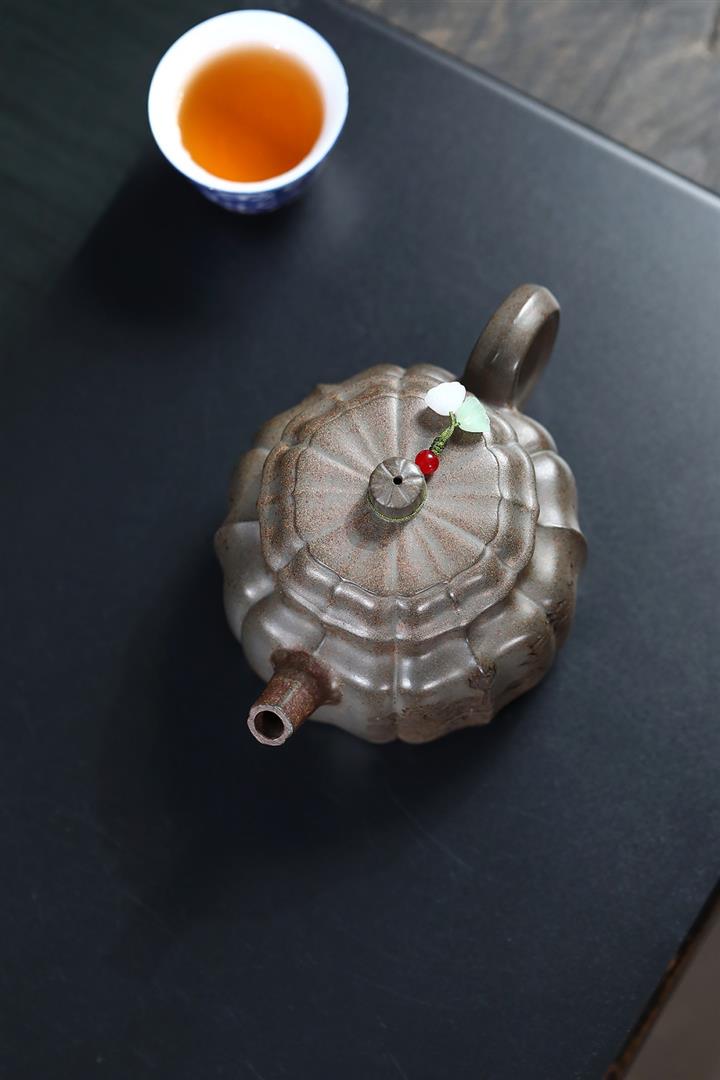330CC原礦沈香泥柴燒筋紋蓮華茶壺POT8644