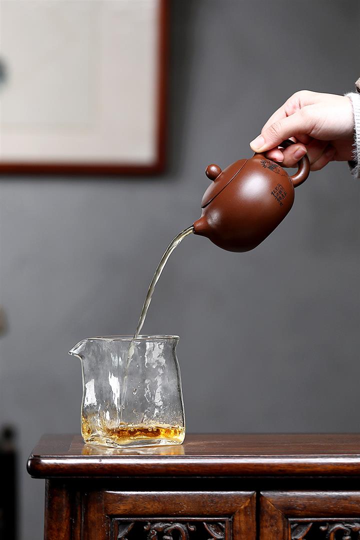 【泥料特點】砂土氣重,似淳實農民,日久使用,漸露鋒芒,養成變化,溫潤莊重。紫砂是壹種雙重氣孔結構的多孔性材質,氣孔微細,密度高。用紫砂壺沏茶,不失原味,且香不渙散,得茶之真香真味。紫砂使用越久,壺身色澤越發光亮照人,氣韻溫雅。紫砂壺長久使用器身會因撫摸擦拭,變得越發溫潤光澤。