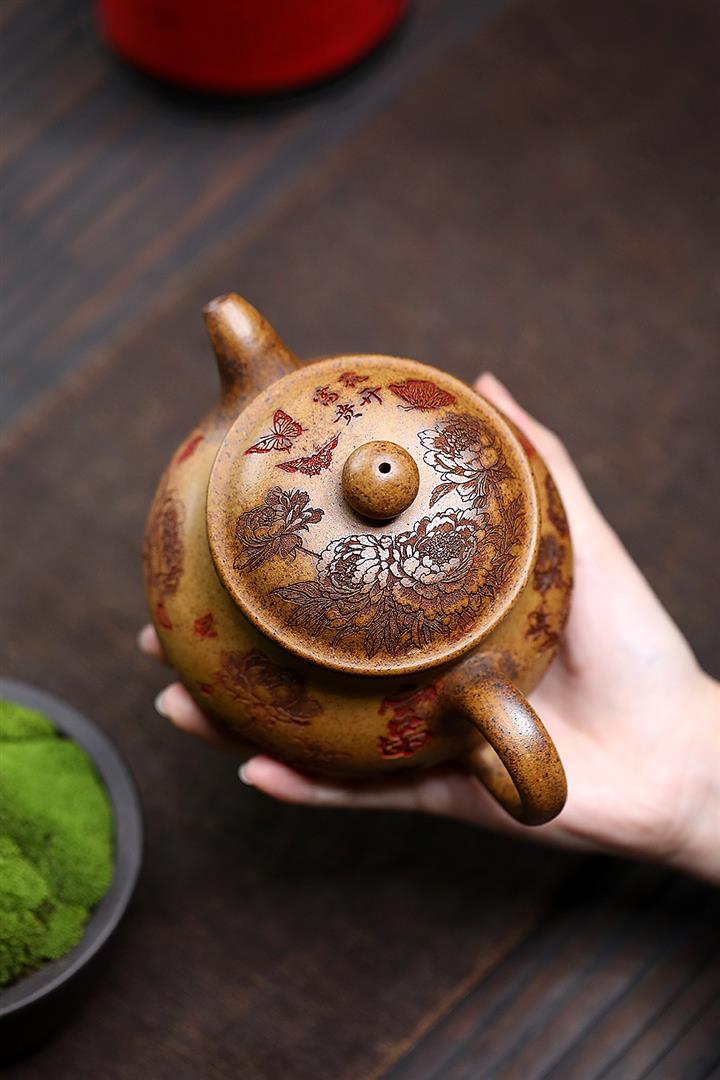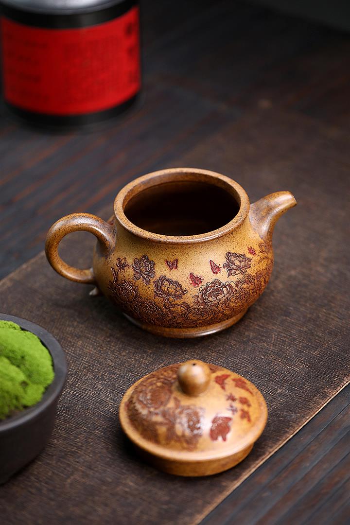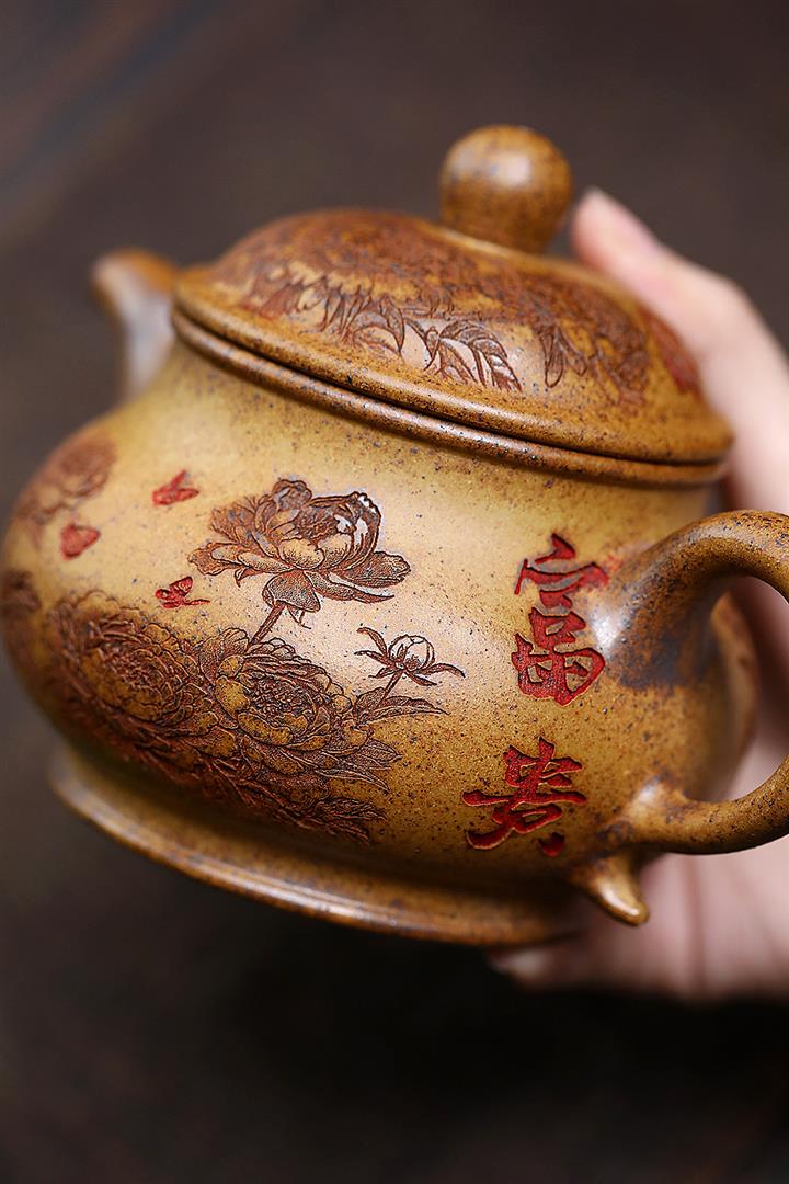 420cc原礦高溫段泥花開富貴潘壺茶壺POT8651