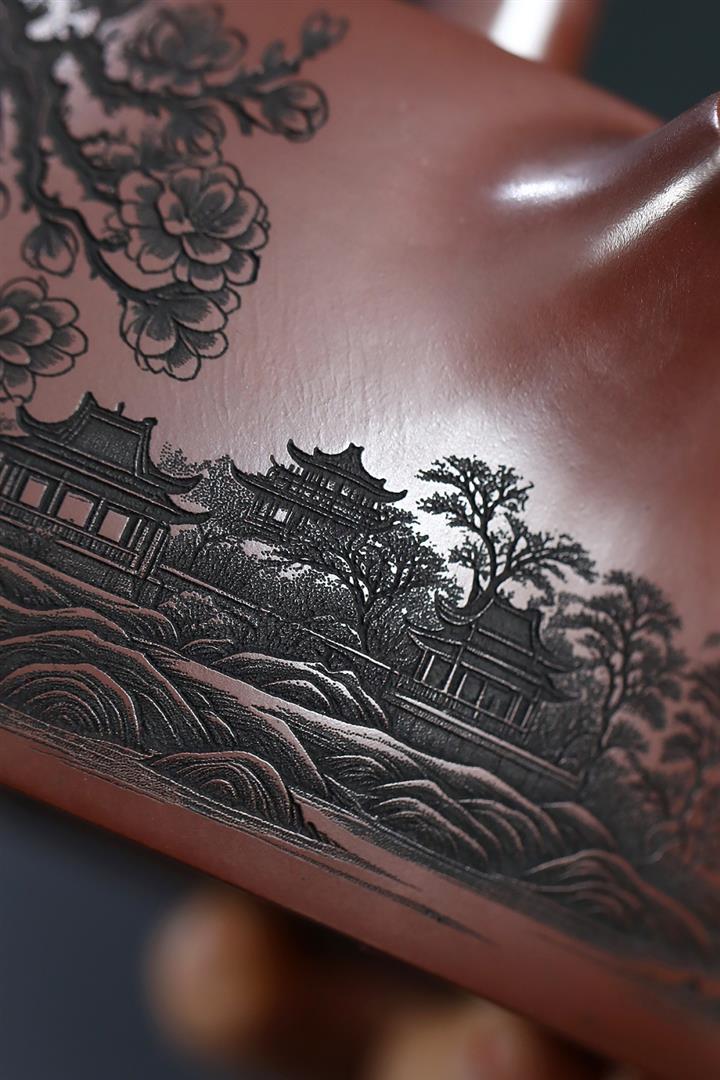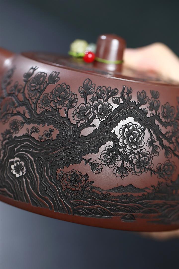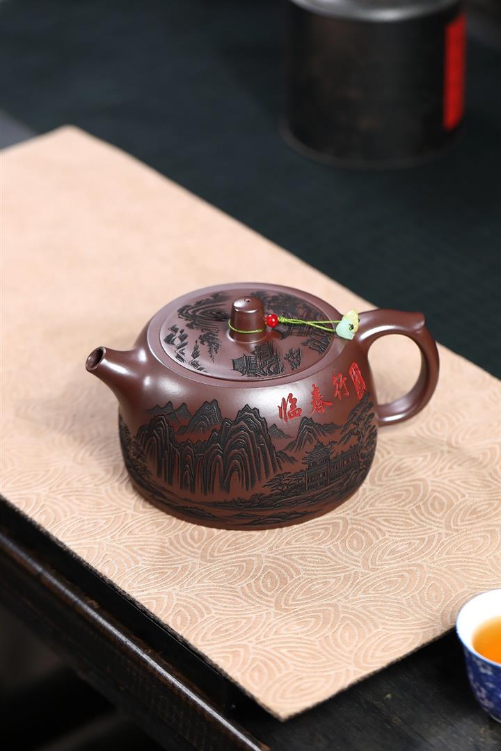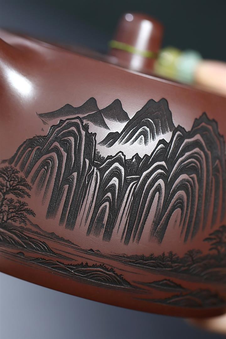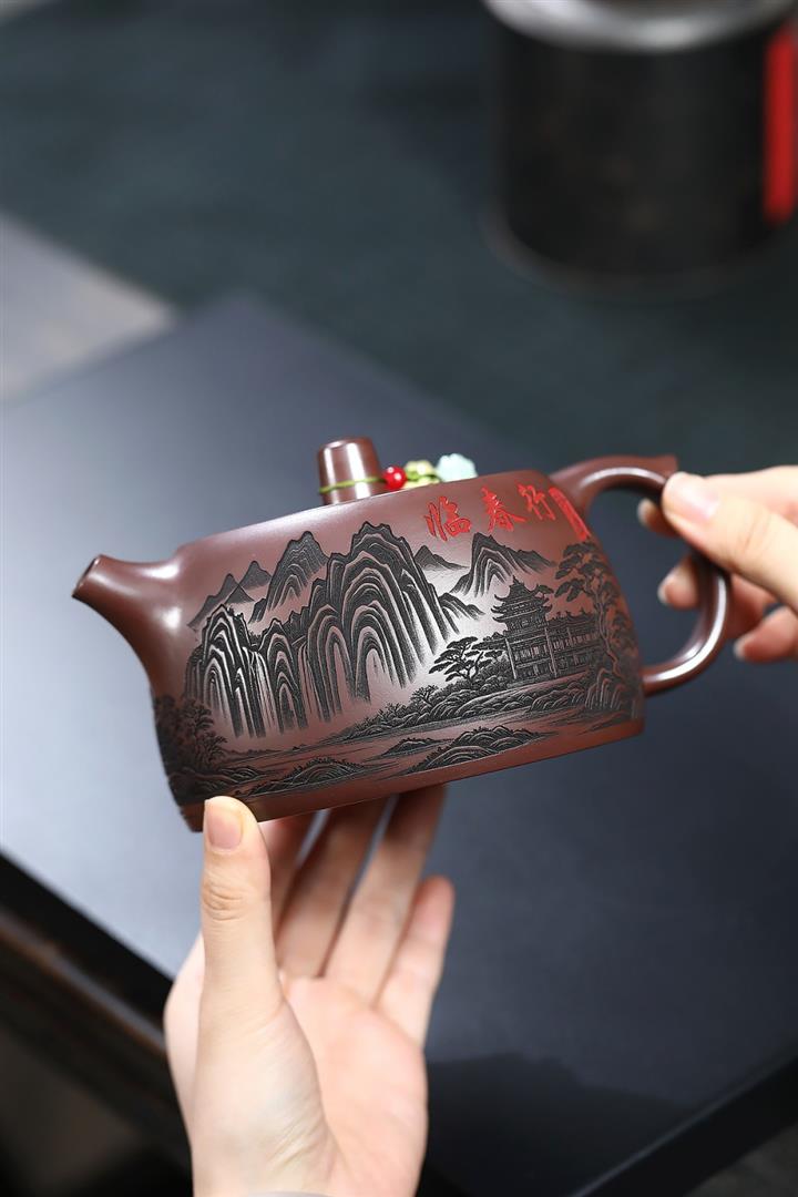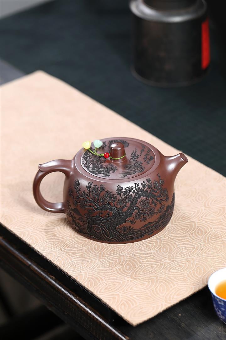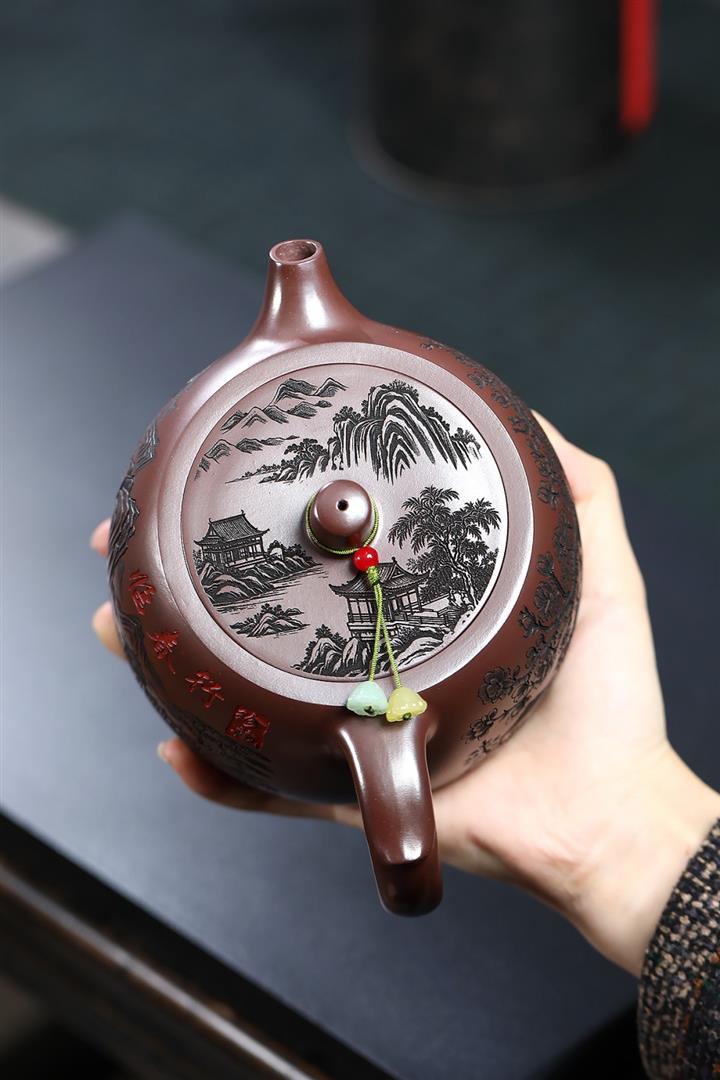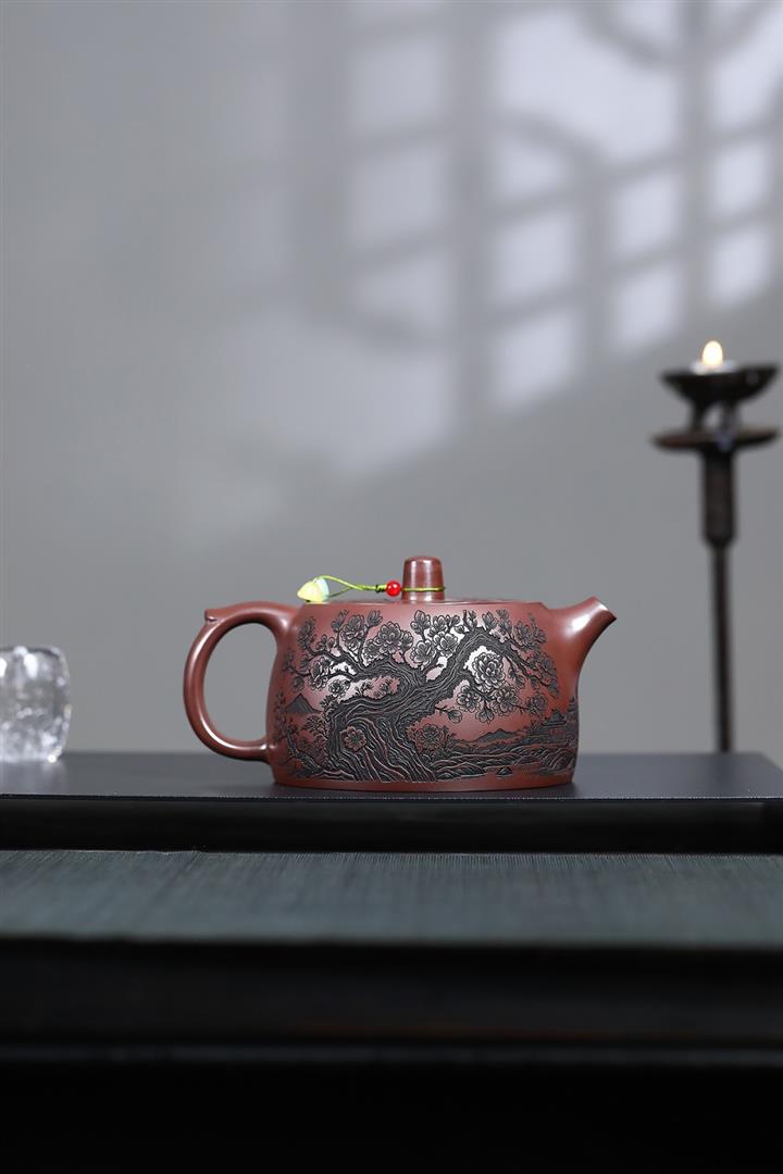 原礦大紅袍焐灰吉祥如意漢瓦茶壺POT7642