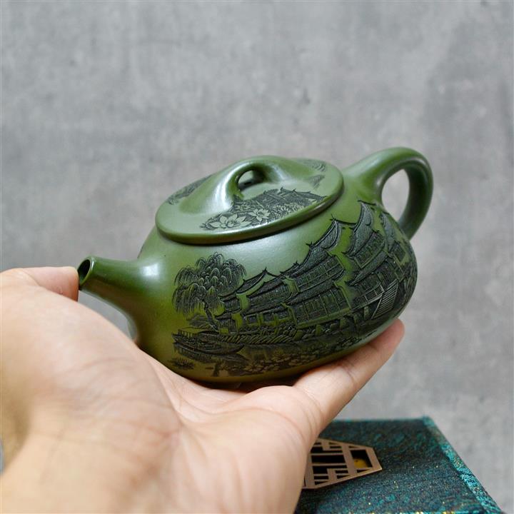 原礦龍血砂手工觀山水平茶壺POT6769