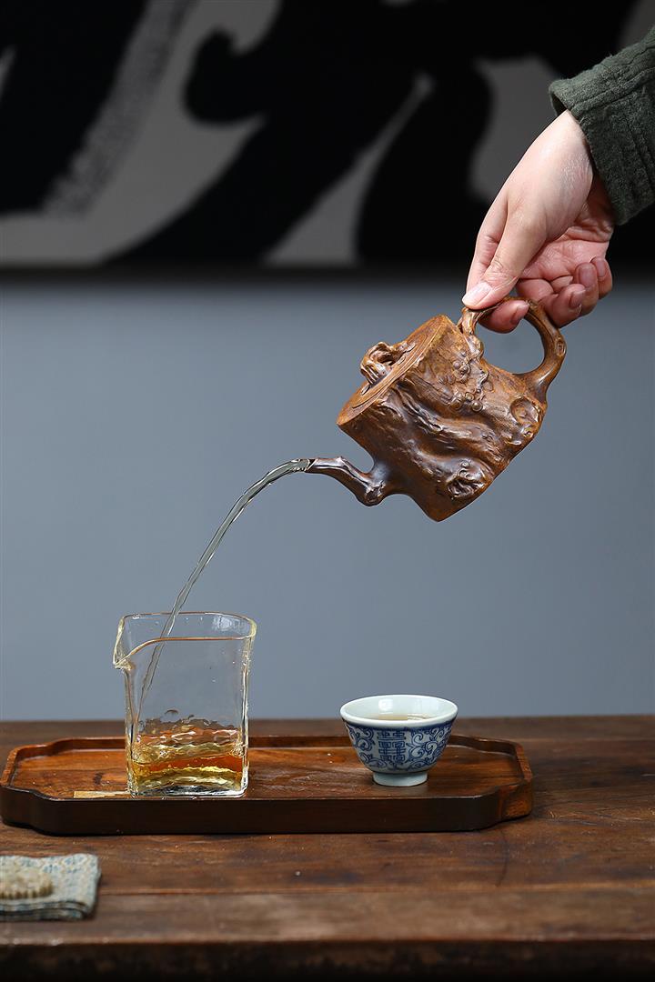 【泥料特點】砂土氣重,似淳實農民,日久使用,漸露鋒芒,養成變化,溫潤莊重。紫砂是壹種雙重氣孔結構的多孔性材質,氣孔微細,密度高。用紫砂壺沏茶,不失原味,且香不渙散,得茶之真香真味。紫砂使用越久,壺身色澤越發光亮照人,氣韻溫雅。紫砂壺長久使用器身會因撫摸擦拭,變得越發溫潤光澤。