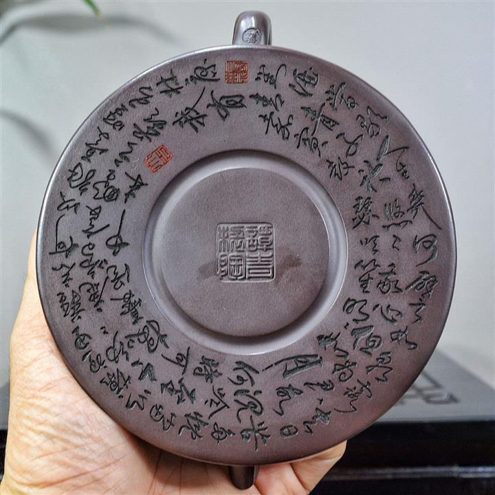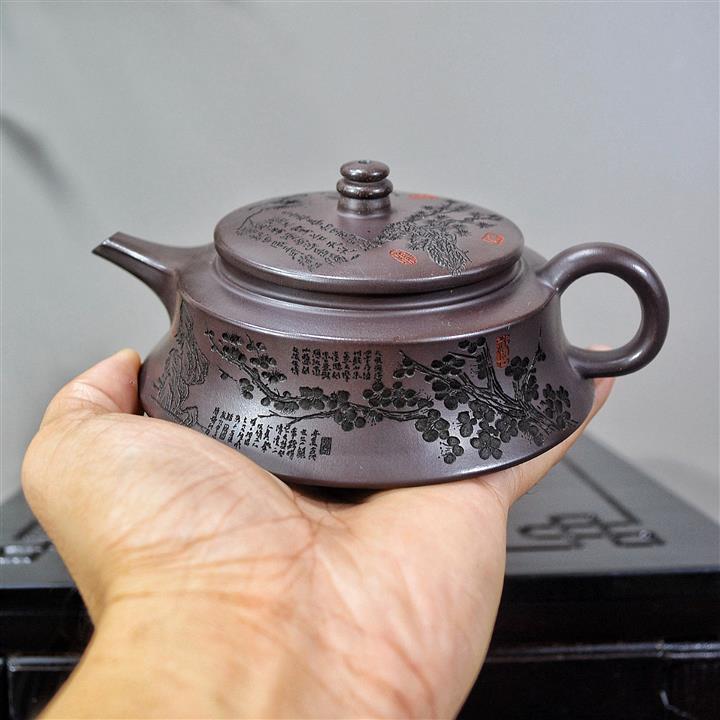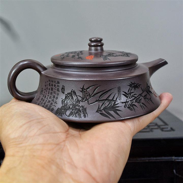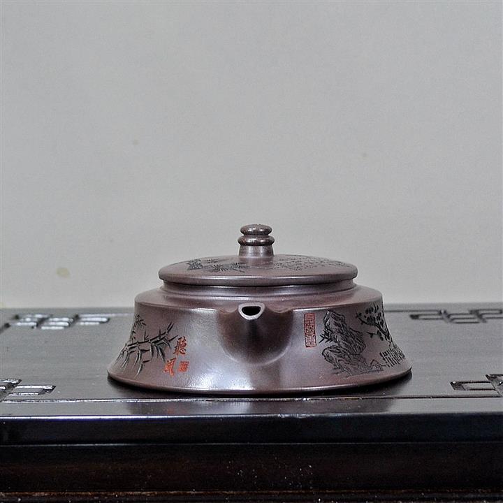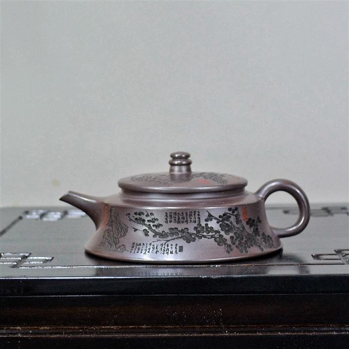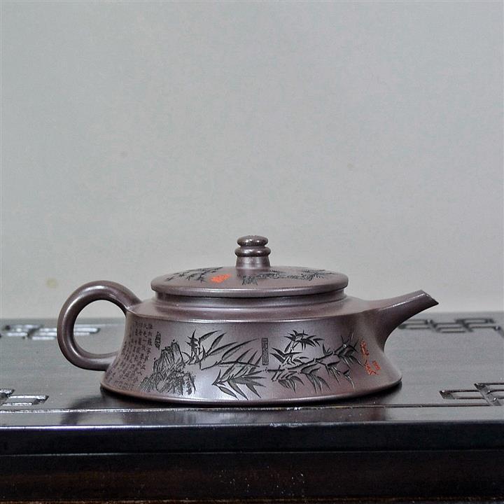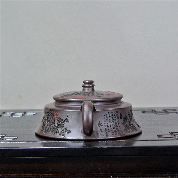 原礦青段泥純手工刻繪周盤茶壺POT6924