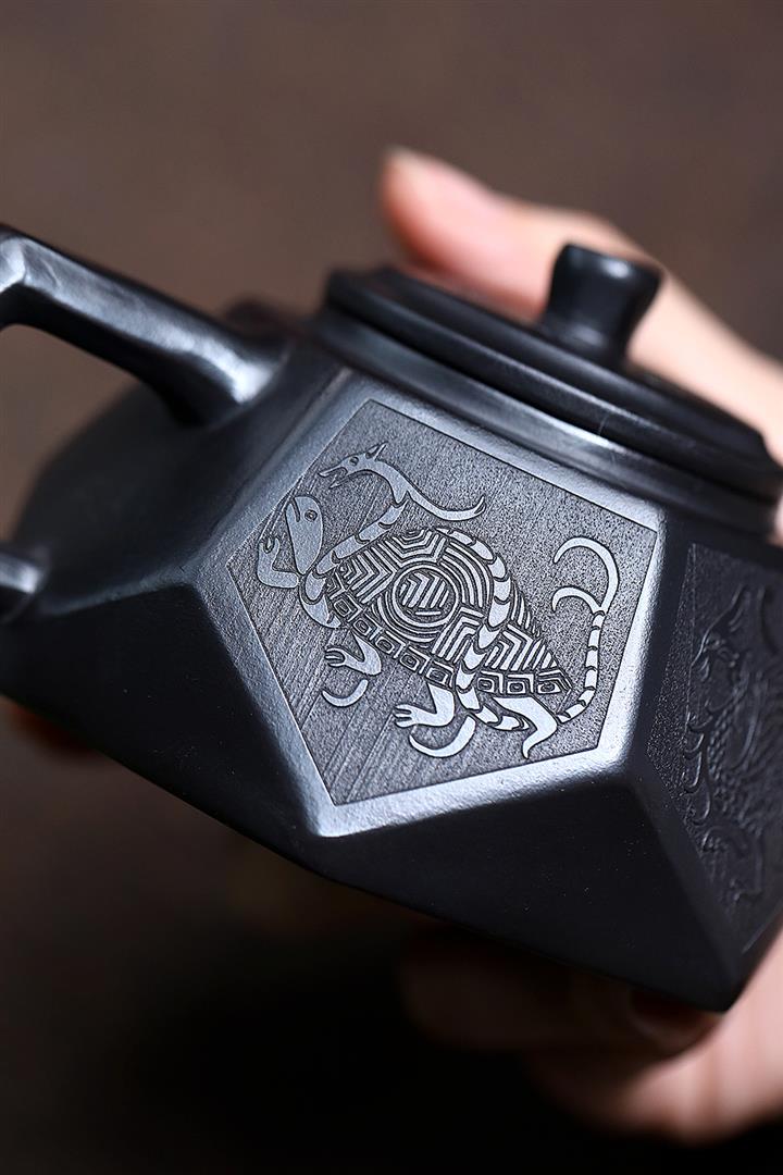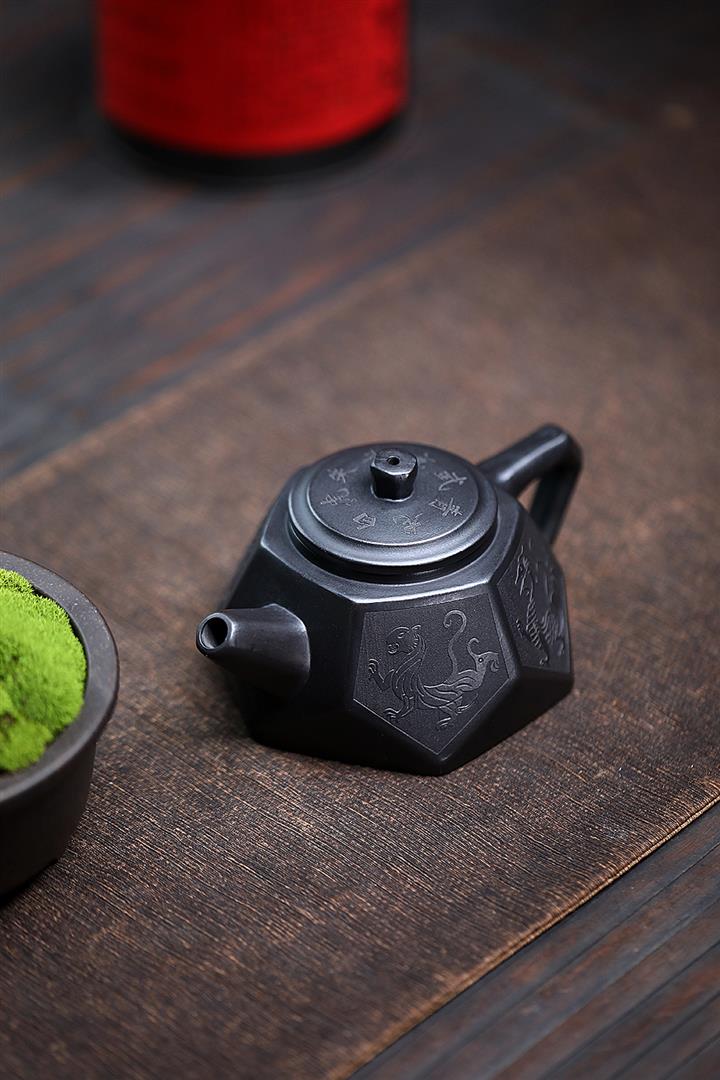 220cc原礦黑泥神獸鉆石茶壺POT8675
