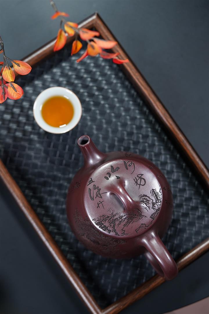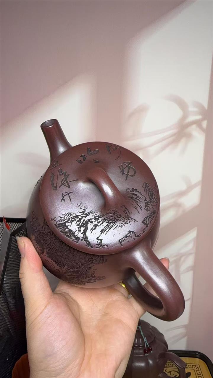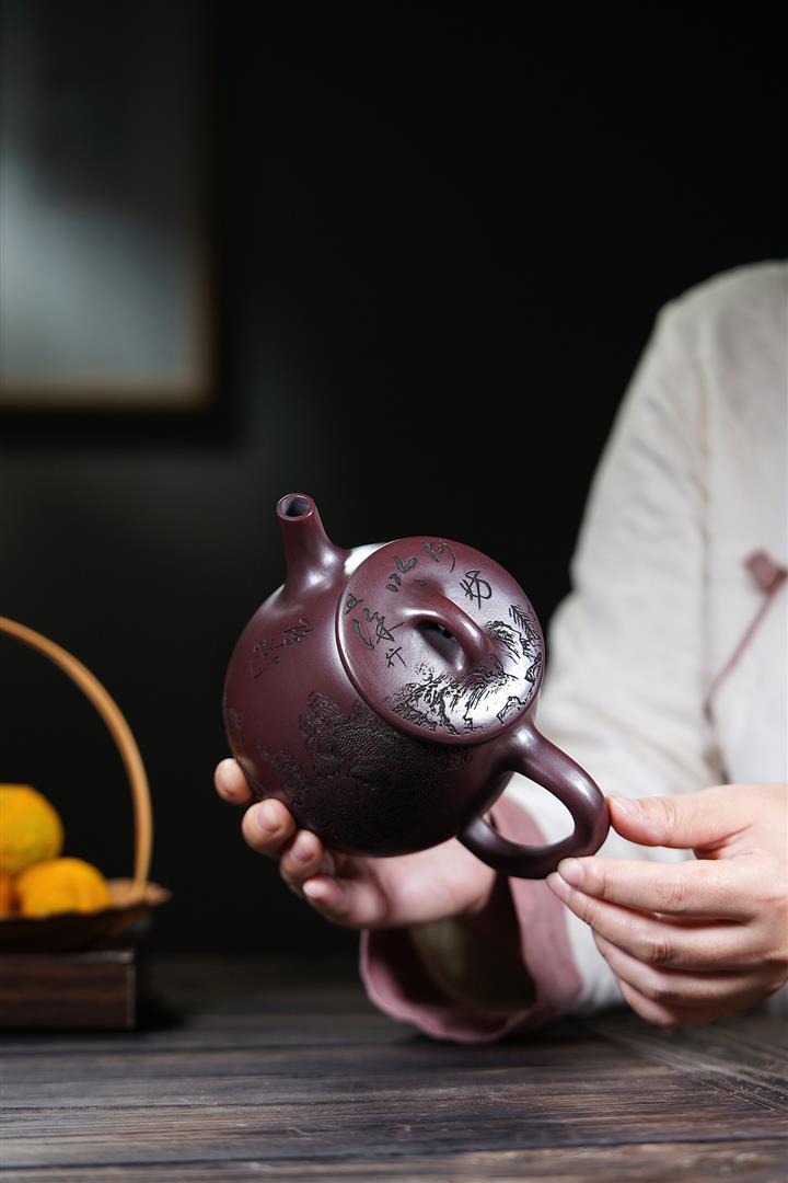 【作品介紹】此款壺形線條流暢,壺把,壺嘴,壺身壹氣呵成栩栩如生,是收藏把玩的好壺,泥料色澤古樸典雅,日久使用,漸露鋒芒,養成變化快,溫潤莊重,用其泡茶,使用的年代久,壺身就溫潤,泡出來的茶湯也就醇郁芳馨。